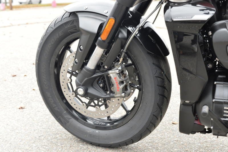 The lightweight sports-styled 10-spoke cast aluminum wheels contribute to the Rocket 3 Storm’s easy handling and are finished in black for added attitude.