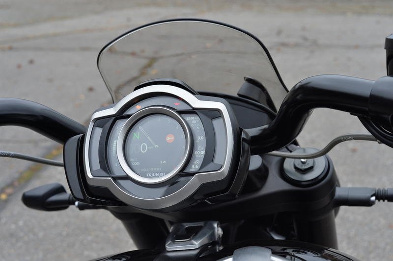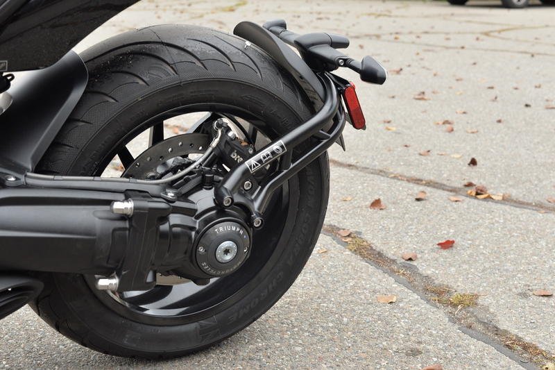 Powerful Triumph branded twin headlights combine with stylish indicators and an integrated rear light to complete the Rocket’s distinctive lighting signature.