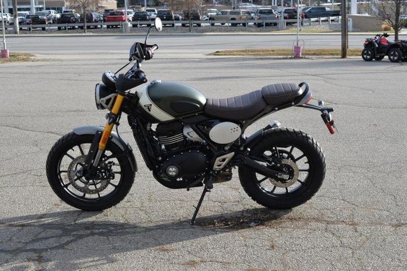 2025 Triumph SCRAMBLER 400 X MATTE KHAKI GREEN / FUSION WHITE- TA39025