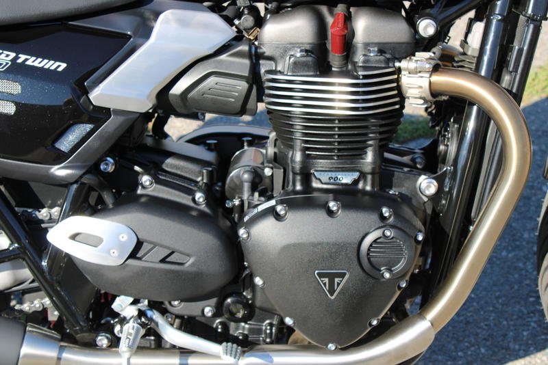 The chassis is set up for the perfect balance of comfort and control and equipped with high-specification components to make the most of any road and every ride. High quality Marzocchi upside down forks and twin rear suspension units are mounted to a strong and lightweight cast aluminum swingarm, delivering precisely controlled wheel travel for excellent ride quality on any road surface. A reassuringly powerful radial front brake caliper grips a large 320mm (12.5in) disc, and lightweight cast aluminum wheels are fitted with premium Michelin Road 5 tires, ensuring the Speed Twin 900 is ready for everything from sporty blasts to relaxed cruising. - THRILLING RESPONSE AND AN INTOXICATING SOUND