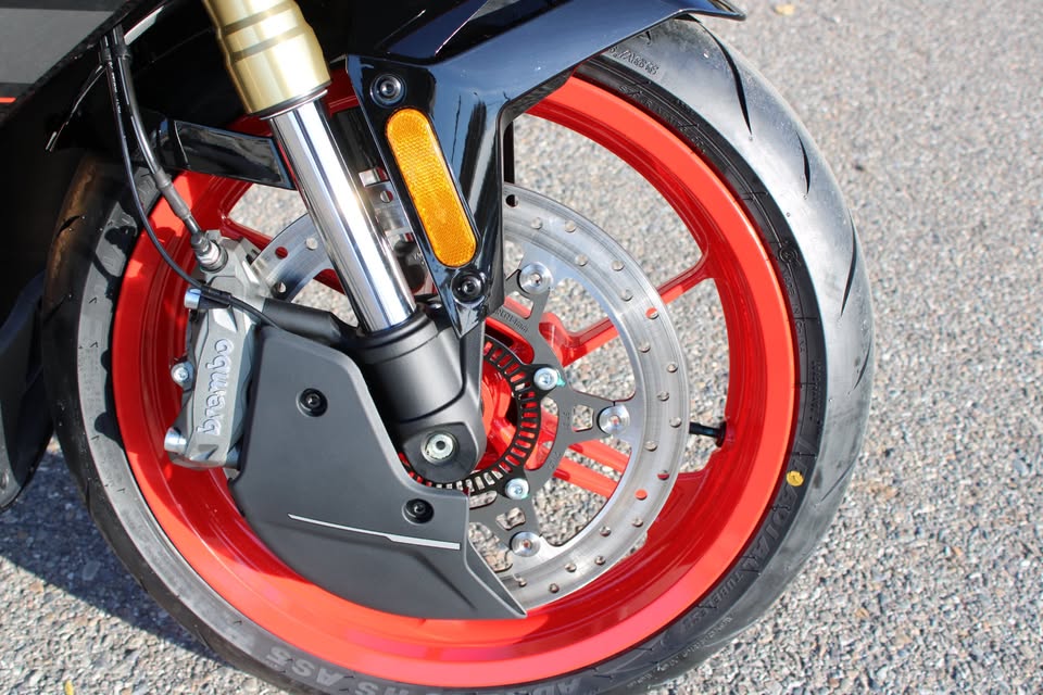 - This isn’t just good braking—it’s premium, track-proven performance. The Brembo® front setup delivers immediate bite, refined modulation, and fade resistance when you need it most. It's more braking power than many bikes in this class offer—because you deserve more.