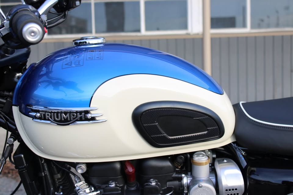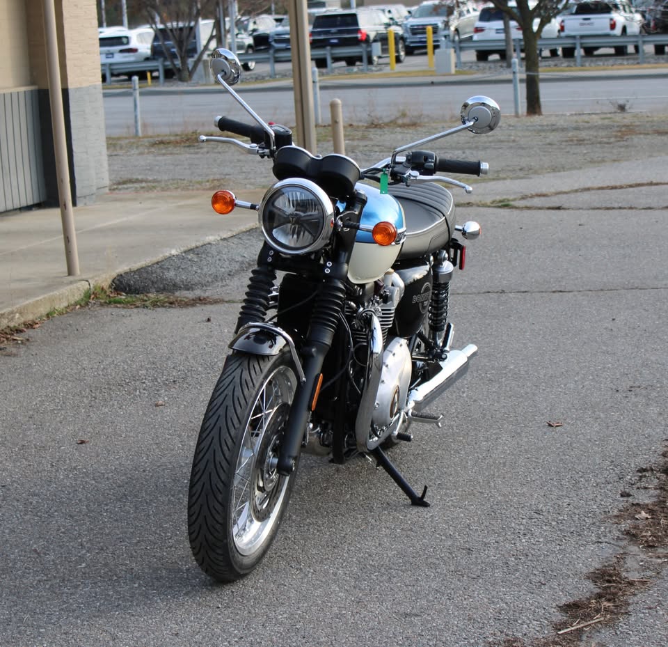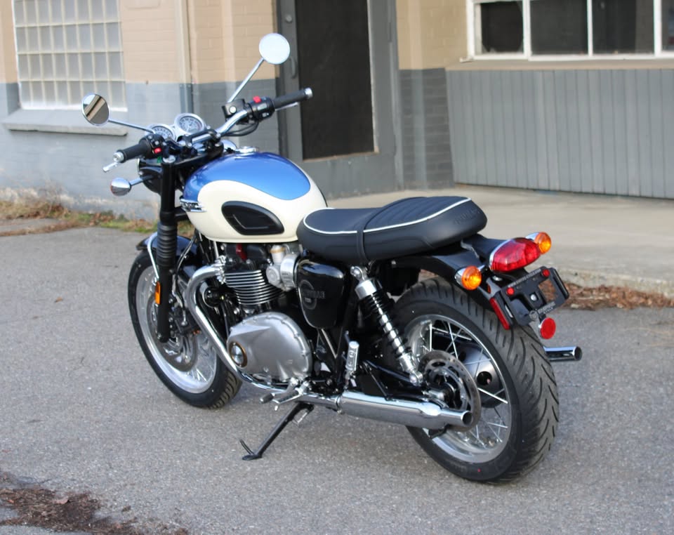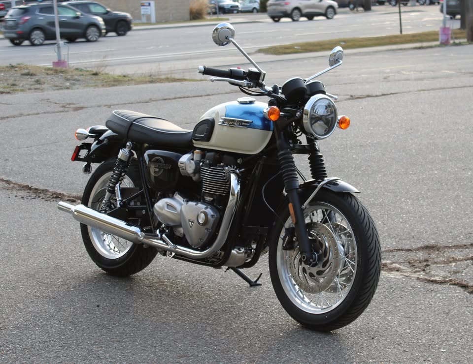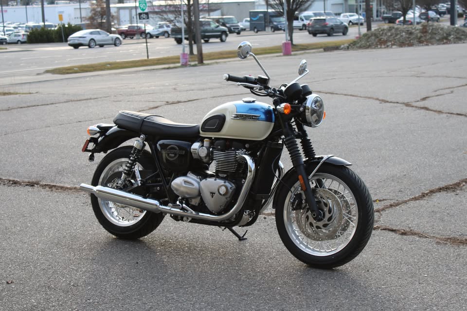 A premium modern classic featuring a striking, hand-painted two-tone scheme that evokes 1960s style. It combines the iconic 1200cc Bonneville engine's torque-rich performance with updated technology, including lean-sensitive ABS, traction control, cruise control, and a USB-C socket, offering a refined, comfortable, and, according to reviewers, delightful riding experience.