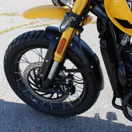 - Side-laced spoked wheels with lightweight Excel aluminum rims deliver Scrambler attitude with modern tubeless practicality, combining timeless style and rugged capability.