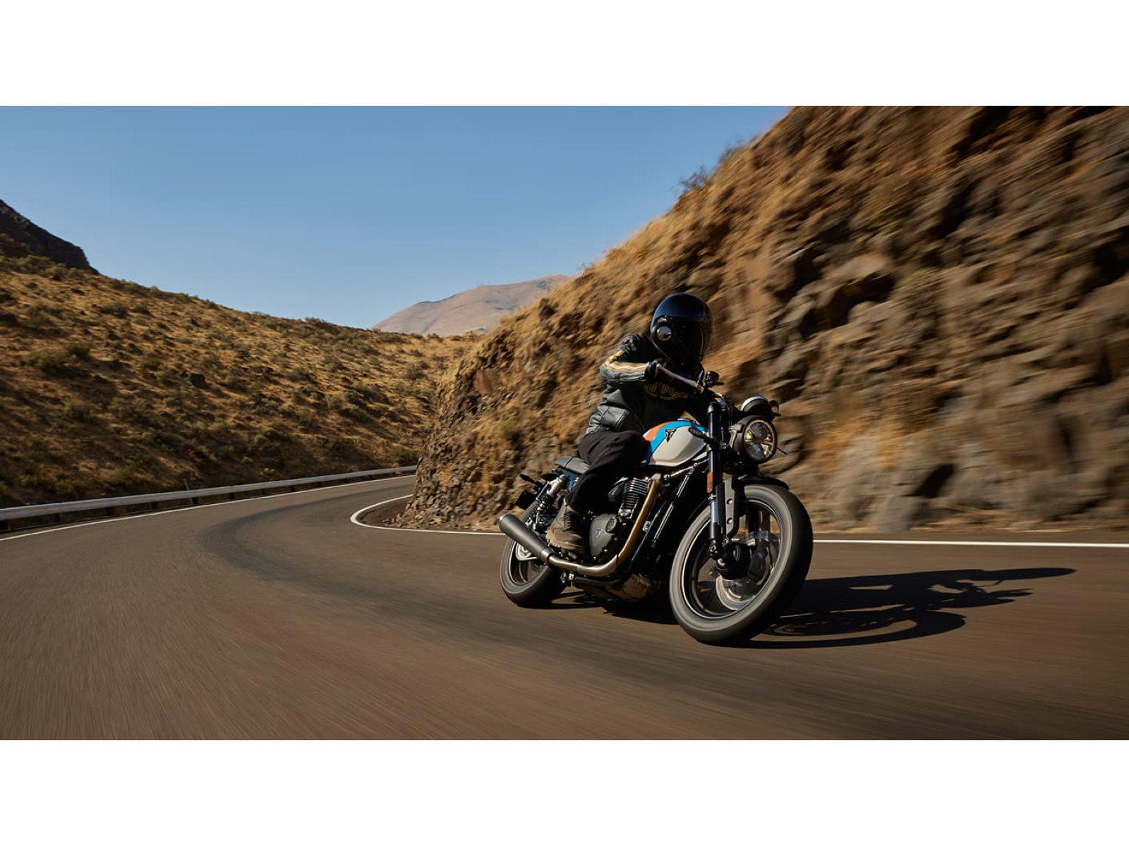 The new Speed Twin 900 blends classic British style with modern minimalism, available in three striking contemporary paint schemes that are guaranteed to turn heads. A sculpted fuel tank and chiseled side panels create a sleek, sharp look, complemented by premium details like a brushed aluminum fuel cap and throttle body covers. Minimalist mudguards and a slim rear frame enhance its modern profile, while vintage-inspired elements including machined cooling fins contrast with black powder-coated engine casings for a look that's as contemporary as it is timeless. - COMFORTABLE AND CONFIDENT