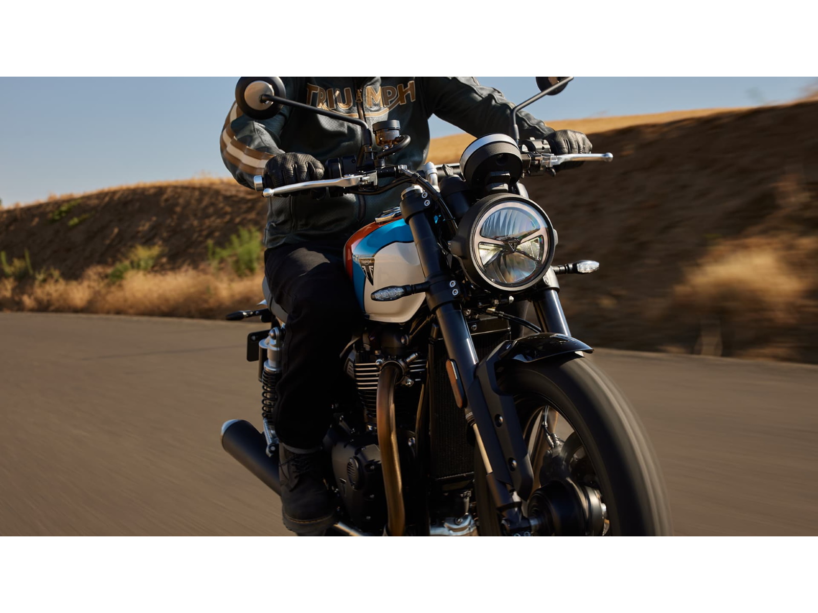 The new Speed Twin 900 blends classic British style with modern minimalism, available in three striking contemporary paint schemes that are guaranteed to turn heads. A sculpted fuel tank and chiseled side panels create a sleek, sharp look, complemented by premium details like a brushed aluminum fuel cap and throttle body covers. Minimalist mudguards and a slim rear frame enhance its modern profile, while vintage-inspired elements including machined cooling fins contrast with black powder-coated engine casings for a look that's as contemporary as it is timeless. - COMFORTABLE AND CONFIDENT