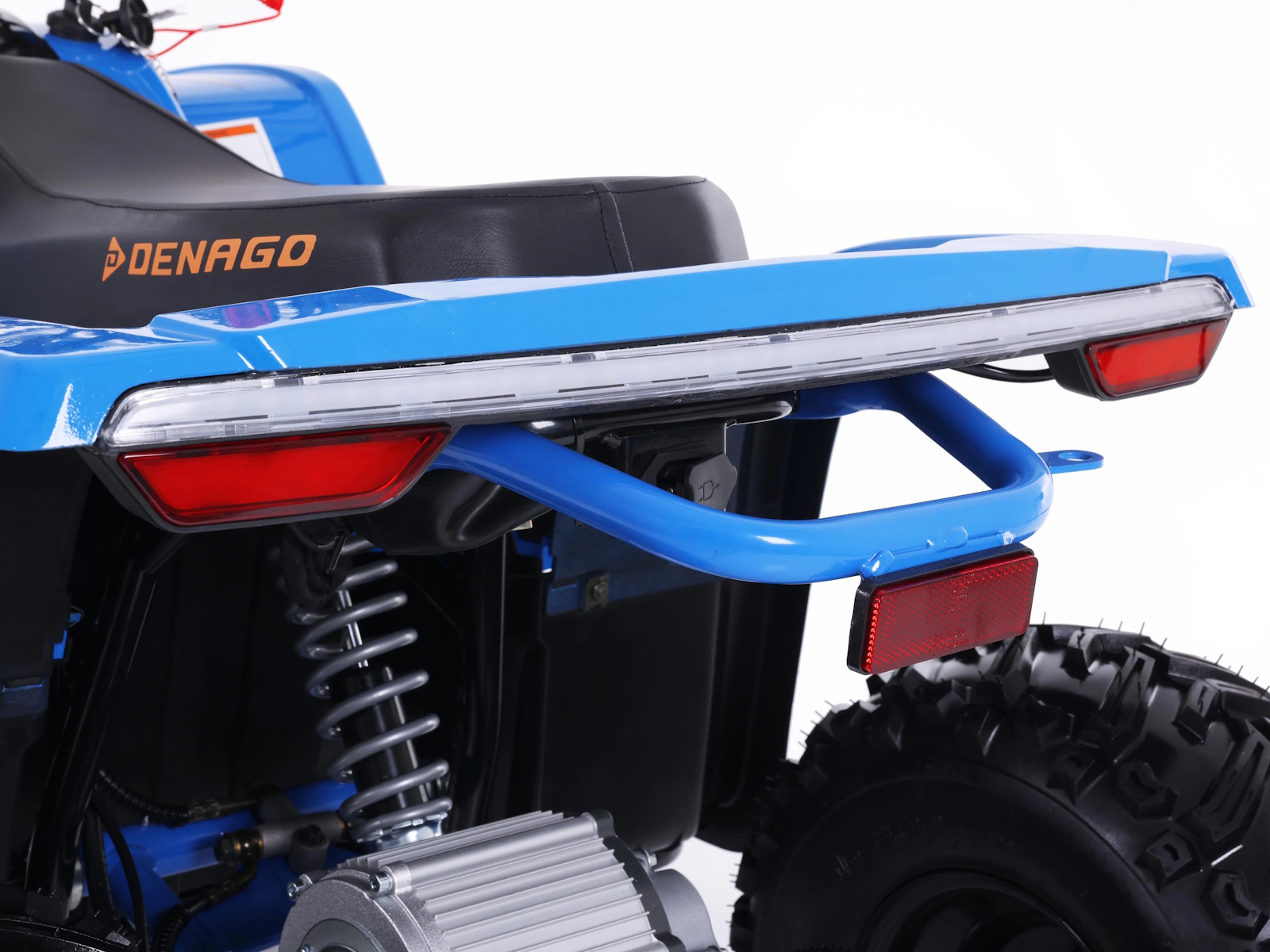 The E-Hawk 6 is the safest way to introduce kids to powersports. Parents can use the Denago smartphone app to limit the vehicle’s speed in 5-mph increments and can monitor the ATVs location. An emergency remote shut-off switch can immediately disable the E-Hawk if kids misbehave. The direct drive open differential offers class-leading rollover mitigation.