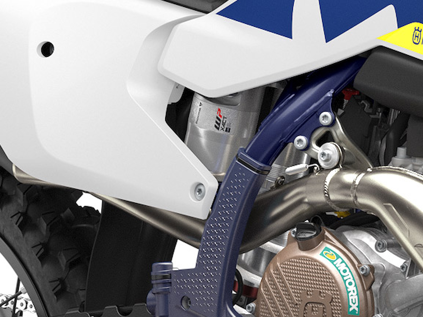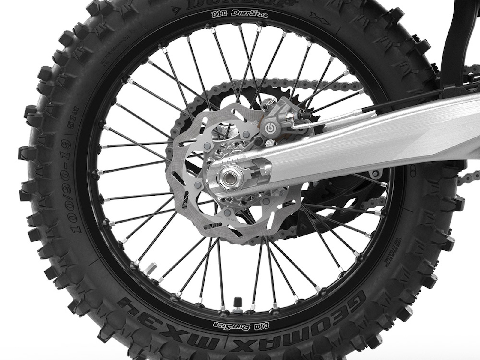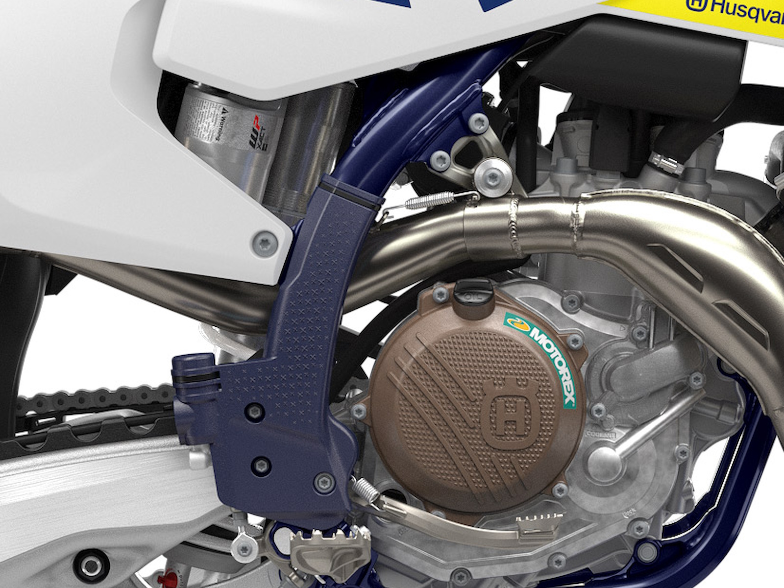 The incredible FC 450 is the flagship machine in the Husqvarna Motorcycles motocross line-up. Its class-leading performance is the result of combining a perfectly balanced chromium molybdenum chassis with a state-of-the-art engine. Additionally, riders can use multiple electronic rider aids to their advantage for a competitive edge on the race track. The FC 450 is equipped with race-tested components including Dunlop Geomax MX34 tyres, ProTaper handlebars, and WP suspension, all of which underline the premium specification of this exceptional model. Aboard the FC 450, you can find the fast way around any circuit.