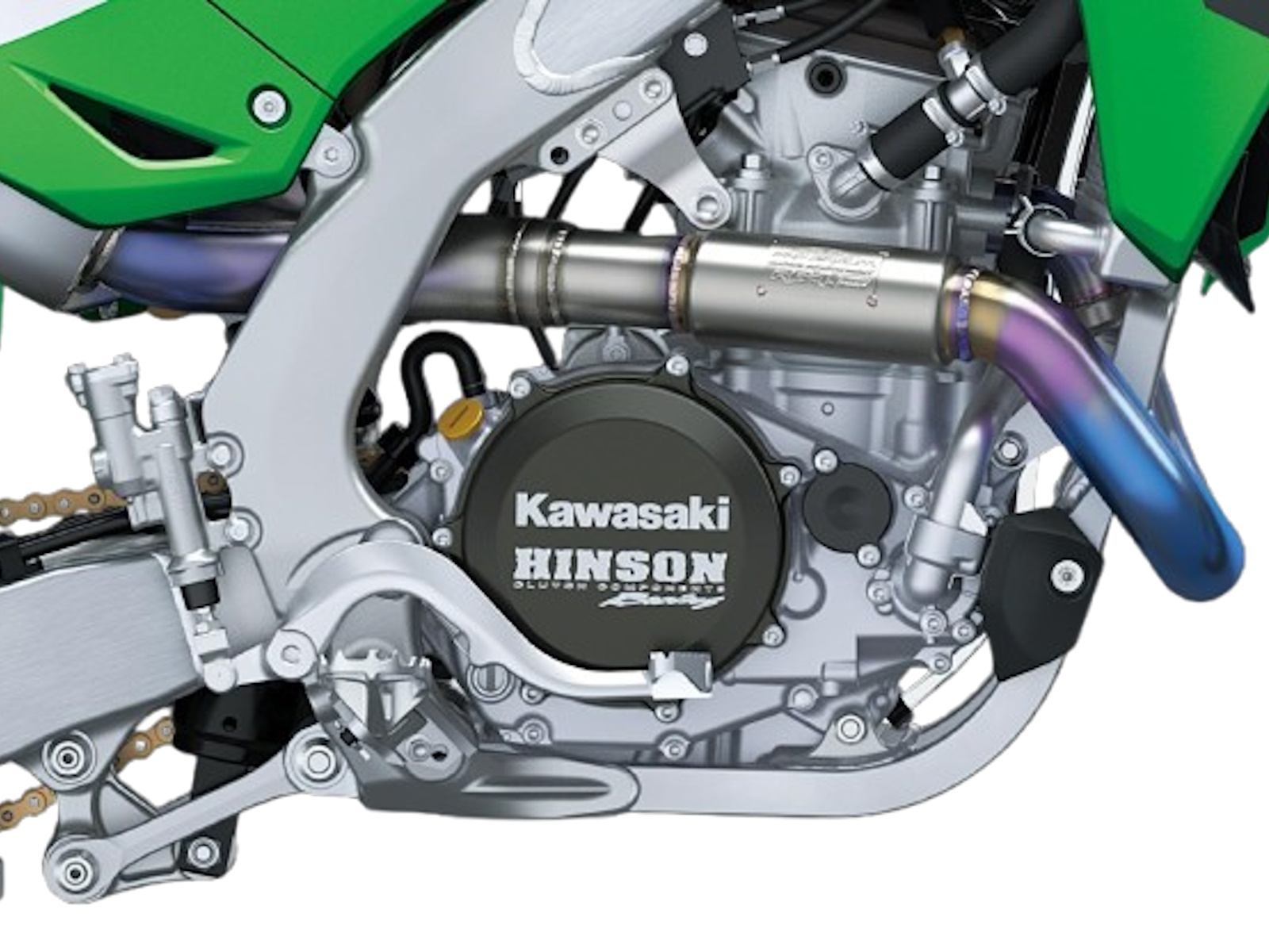 - Hinson clutch cover with Kawasaki logo