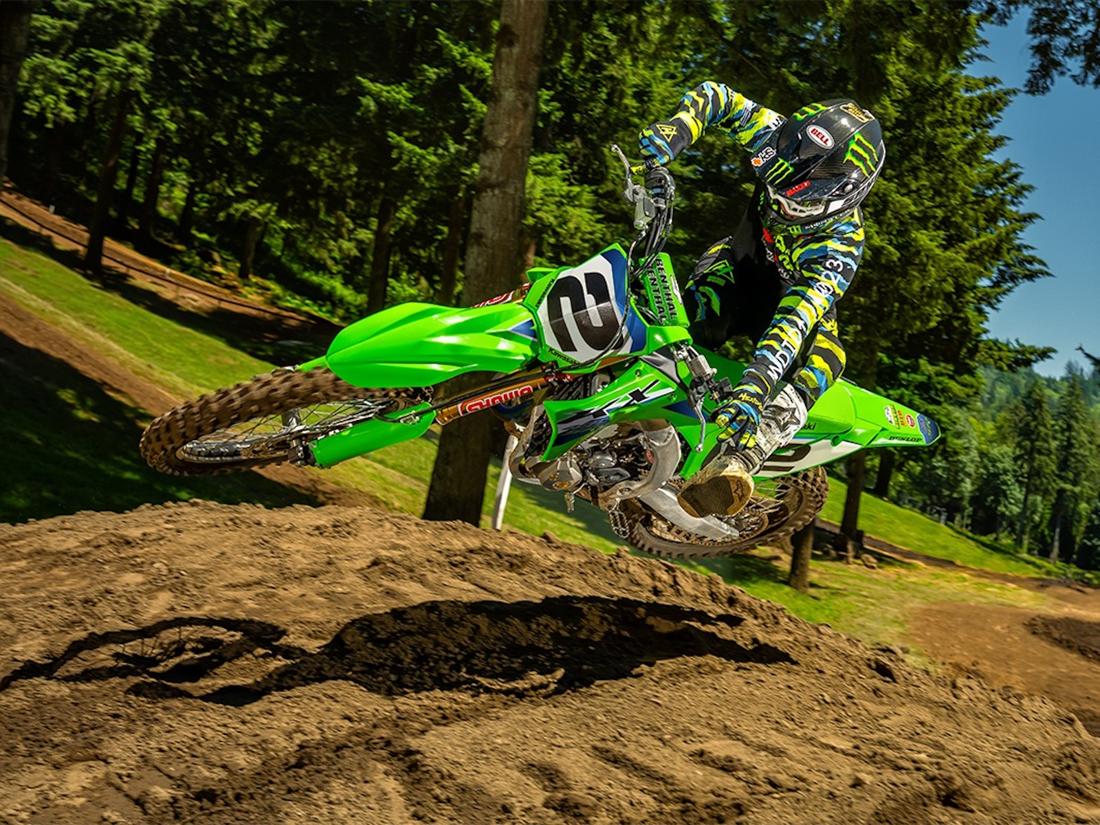 - With agile handling, a strong and lightweight chassis, and ERGO-FIT® adjustable components, you’ll experience an unmatched race-winning advantage on the KX™450SR motorcycle. Stand out from the crowd with factory-edition styling, featuring Monster Energy® Kawasaki race team-inspired graphics, Lime Green handlebar pad, Metallic Magnesium Gold cylinder head cover, and a Hinson clutch cover.