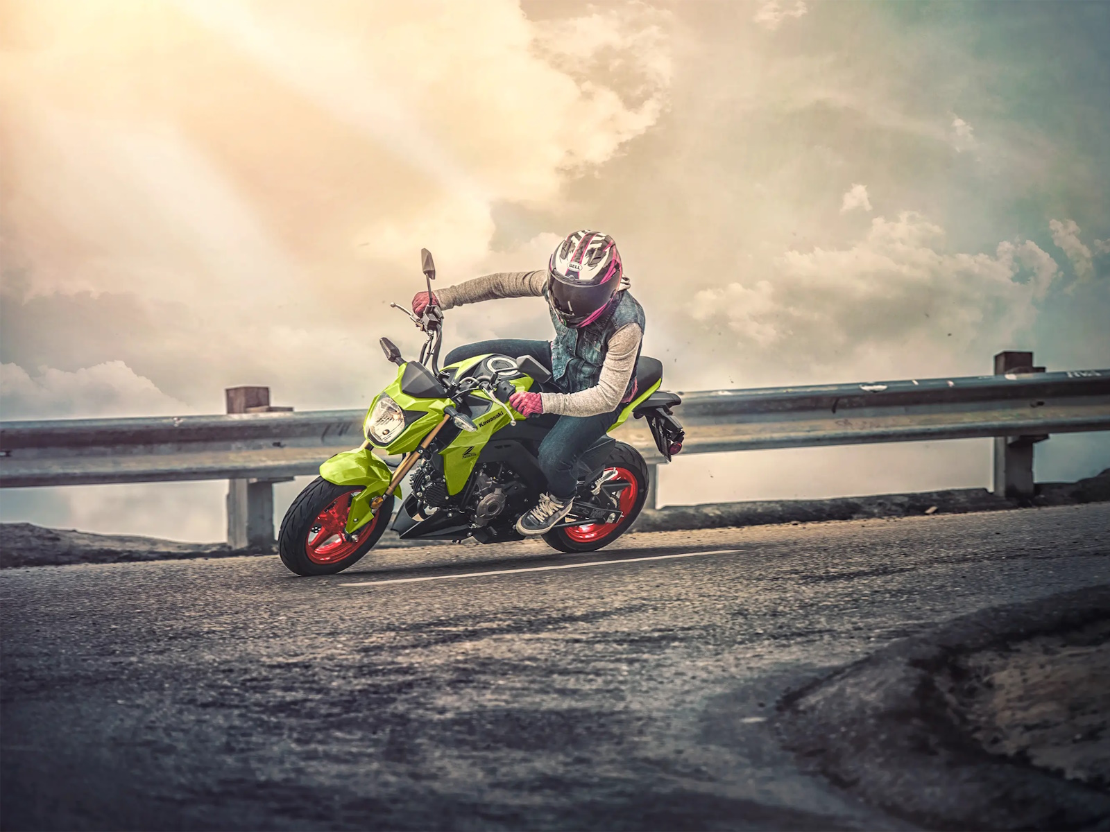 Small in size but big on fun, the Kawasaki Z125 PRO motorcycle is a nimble streetfighter that makes a statement wherever it goes. With a 125cc engine, upright riding position, and responsive street tires, it's your invitation to the rebellious side of fun.