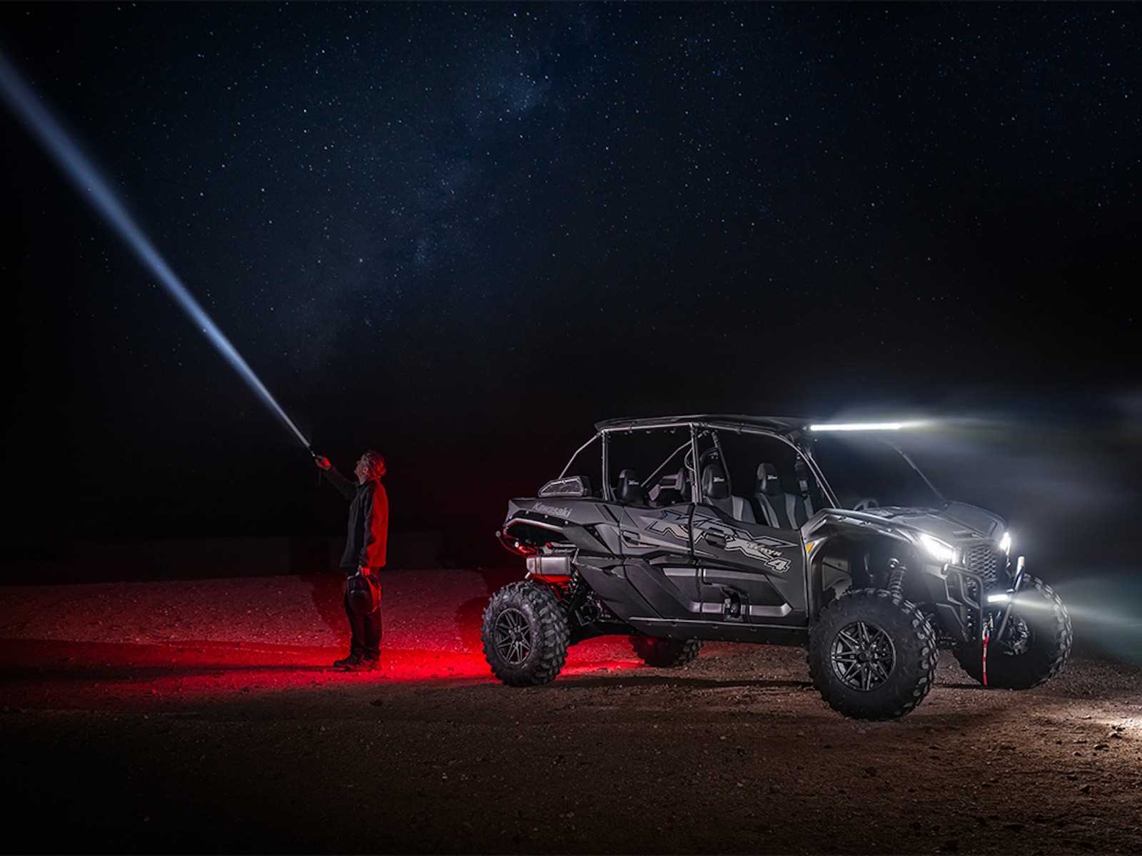 Dominate Adventure with more friends and family with 4-passenger seating on the new Teryx® KRX4™ 1000. With an enlarged chassis, no sacrifices were made to accommodate the additional passengers. Advanced suspension technology combined with beefy wheels and tires deliver the ultimate riding experience. The Teryx KRX4 1000 reinforces and elevates the reputation of purpose-built Kawasaki sport side x sides.