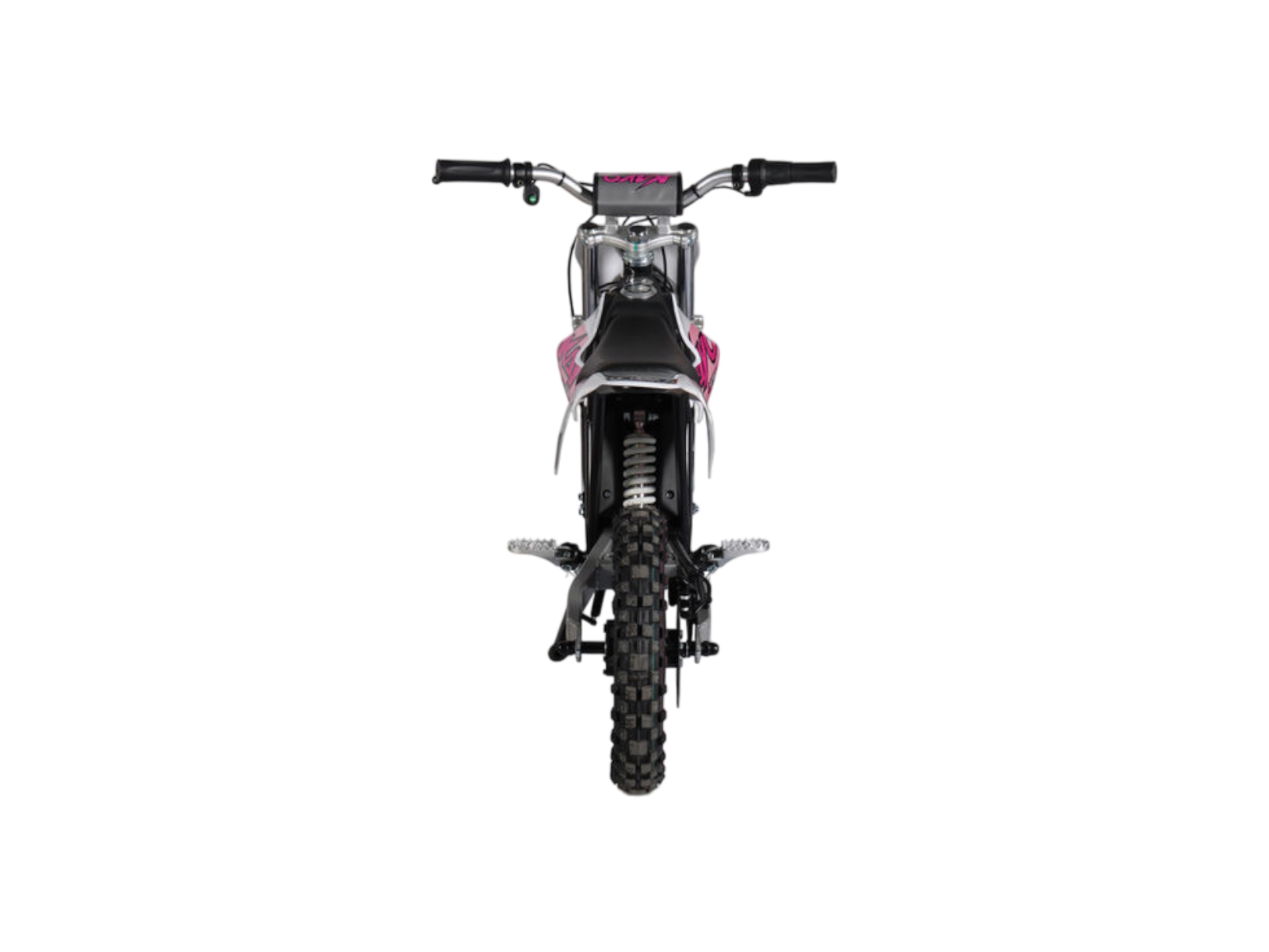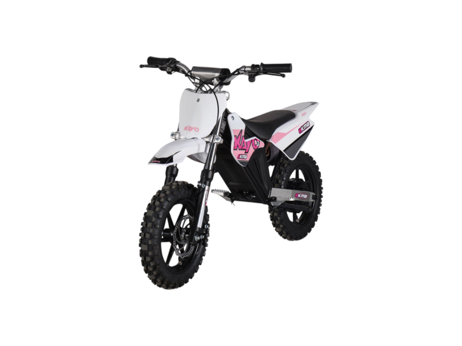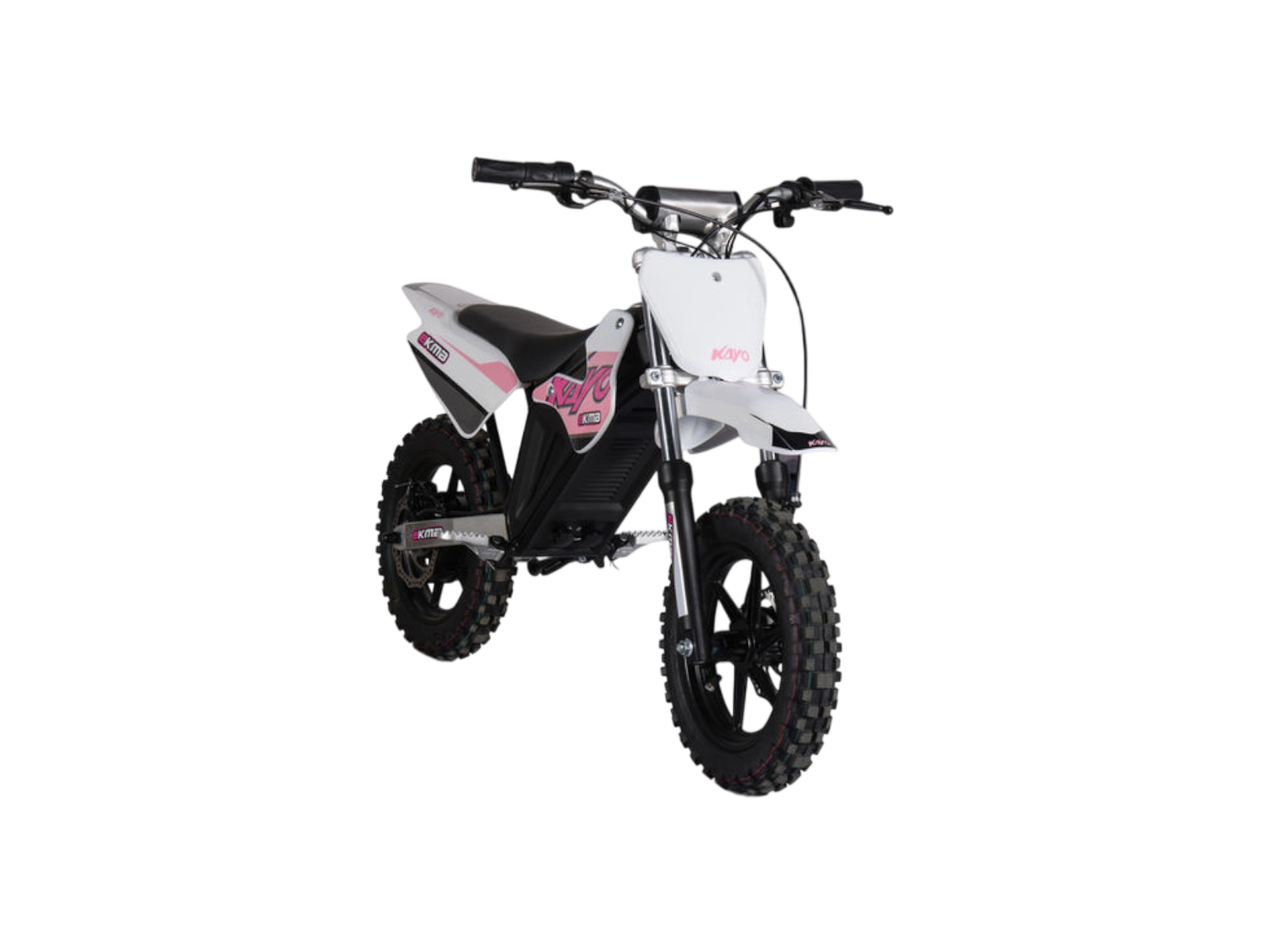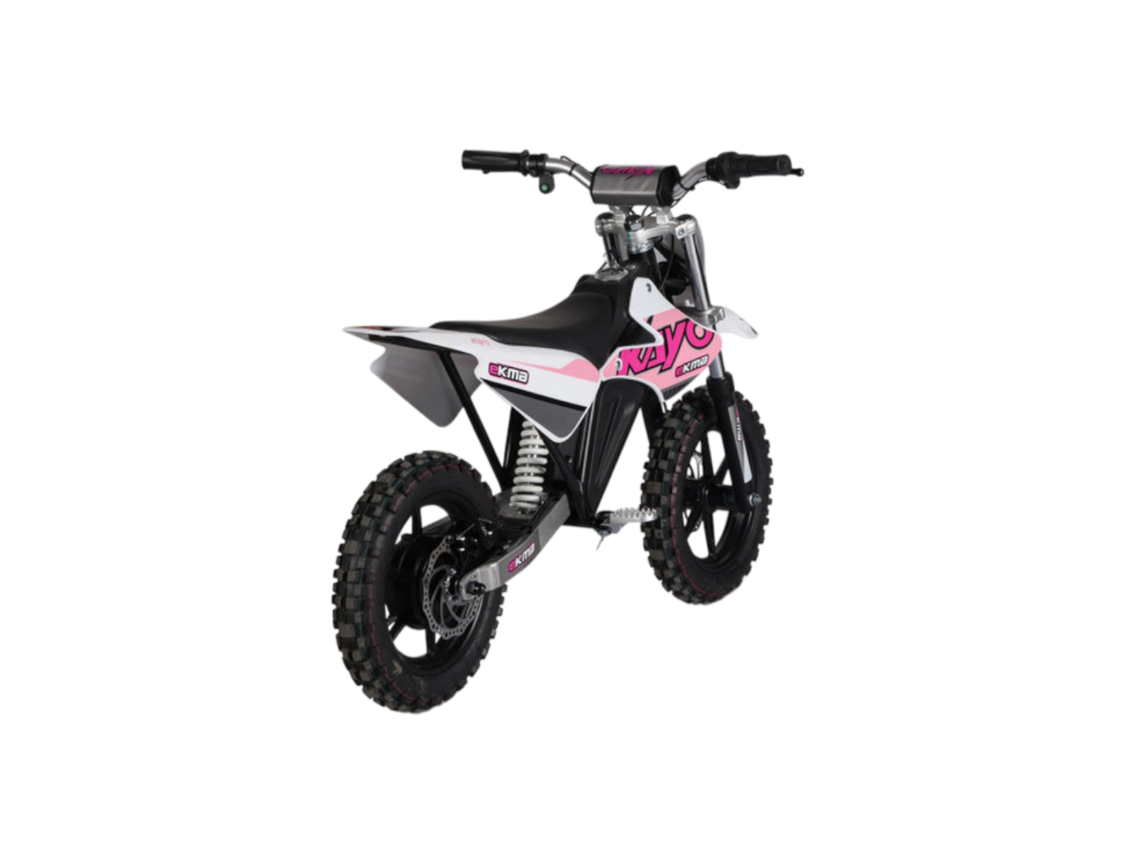 The EKMB was designed to be the ultimate beginner bike aimed at kids who are just starting their two-wheeled journey. The low seat height of 21.25 inches and light weight design help inspire confidence as they begin to progress. Speed settings can adjusted on the fly and have a parental lock to make sure they don't advance through the speed settings without the approval of Mom and Dad. Disc brakes give this bike more than enough stopping power and even limit throttle input while under braking. Each unit comes with three full graphic kits, orange, green, and pink to help customize it. You can expect run times to last up to 70 minutes, when you are done, just stick it back on the charger and let it recharge. No more dirty air filters, carb adjustments, and oil changes. More riding, less maintenance!