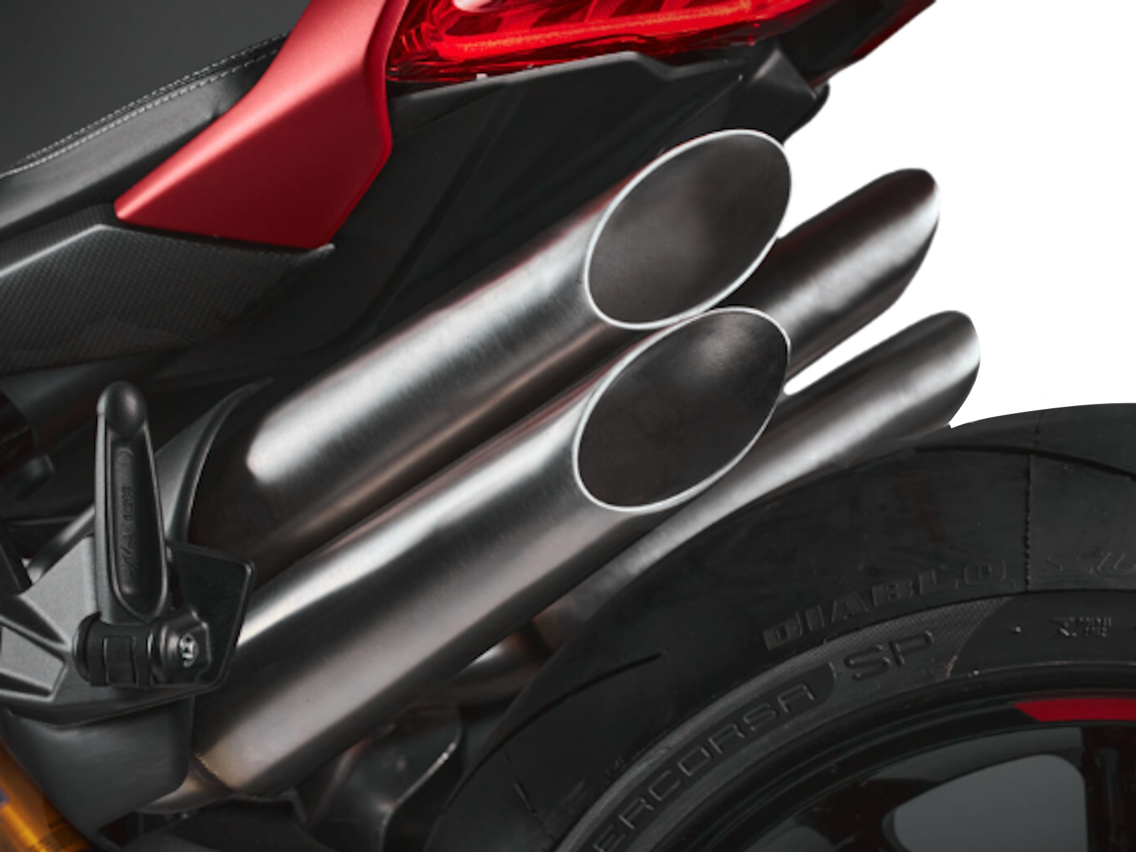 - The use of titanium for the connecting rods and for the intake and exhaust valves is an indication of the high quality that characterises the Brutale project. The rider interface is also a point of excellence, thanks to the 5.5” TFT panel, the multifunction electrical controls and the MV Ride App, which allows you to set numerous electronics and engine parameters directly from your smartphone. The Front Lift Control works on the angular velocity to manage wheelies smoothly and effectively, preventing abrupt drops in power. And the engine is always correctly lubricated thanks to the semi-dry sump.
