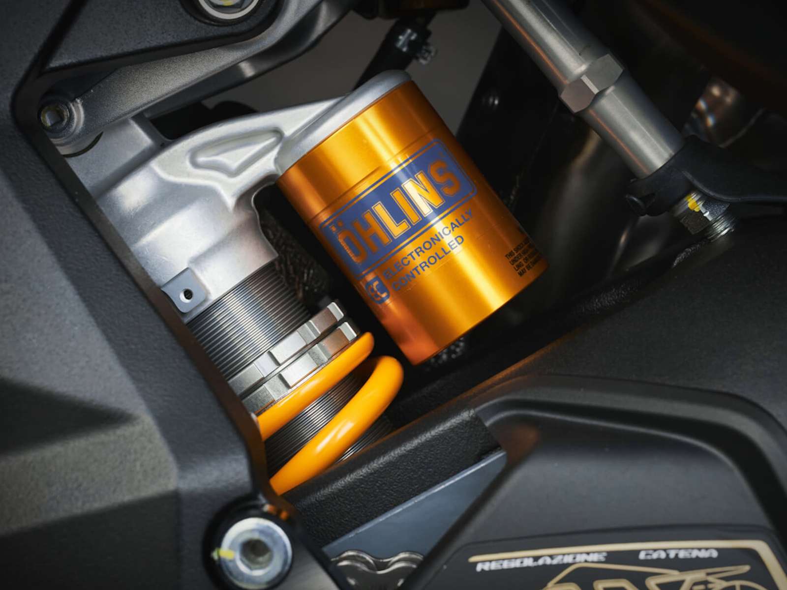 Progressive, single shock absorber Öhlins EC TTX completely adjustable with electronically controlled compression and rebound damping and spring preload