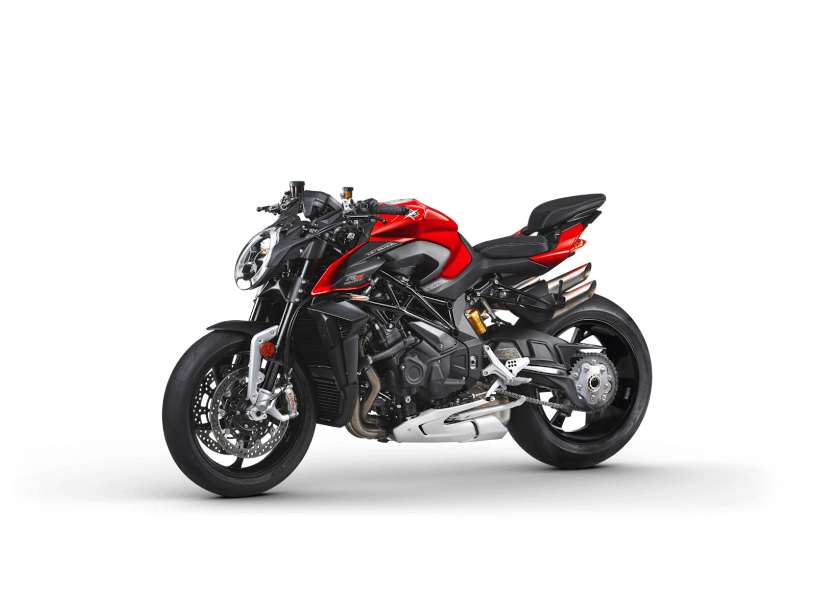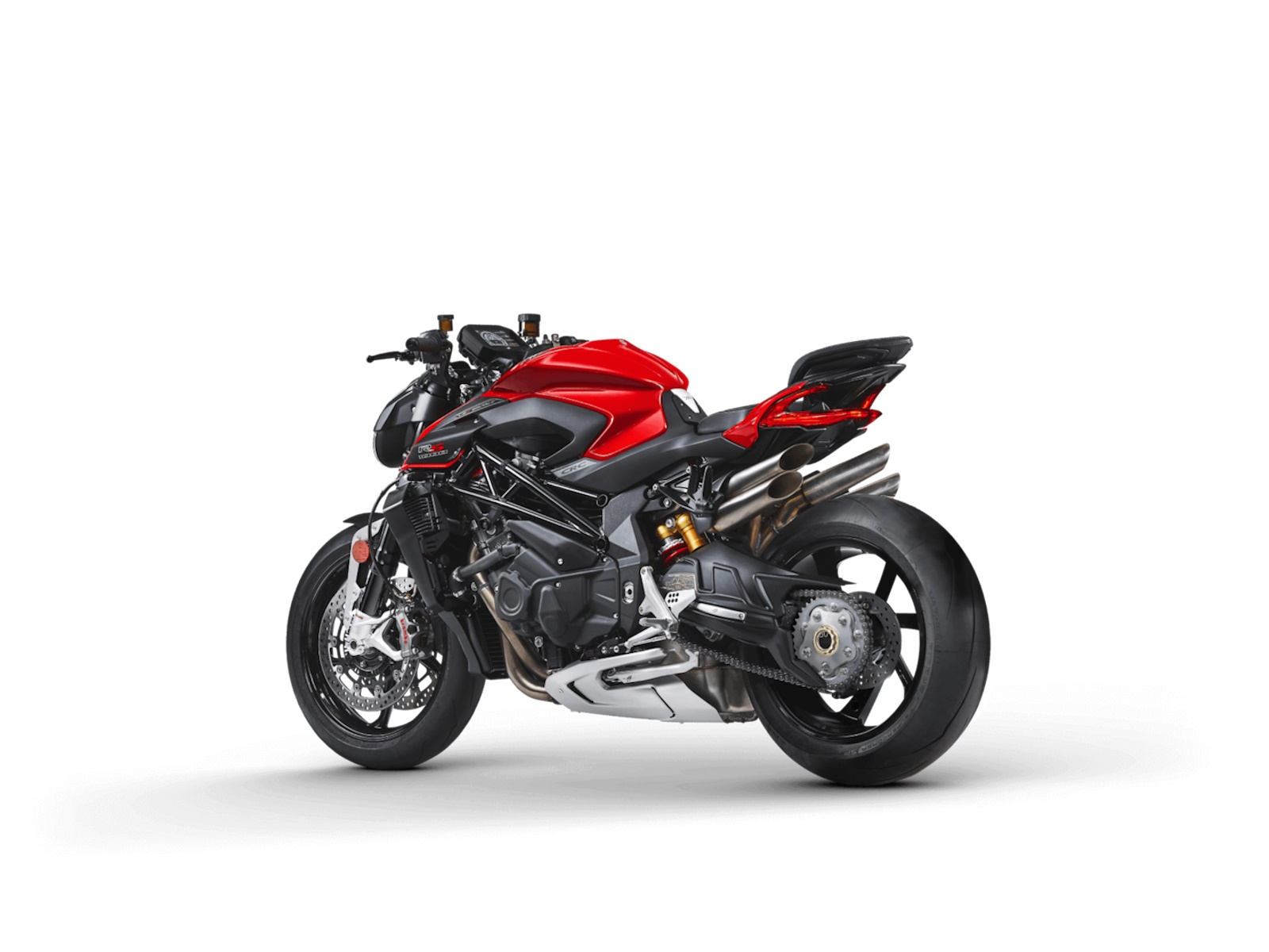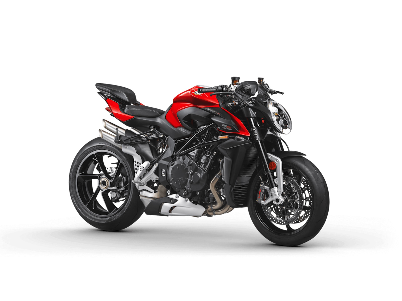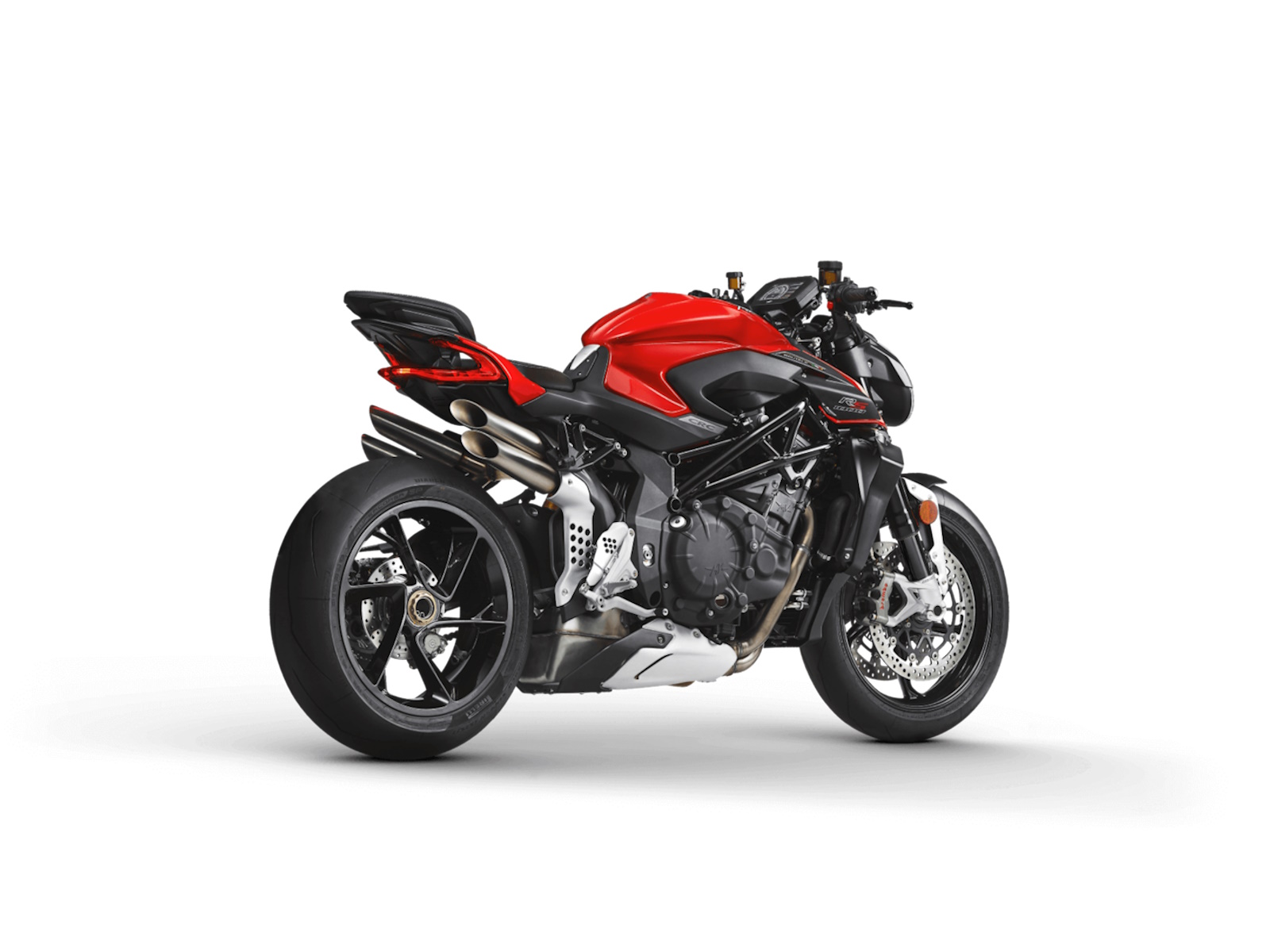 Lighter crankshaft - New combustion chamber Lighter pistons - Titanium connecting rods Dashboard TFT 5.5” color display - Cruise control Bluetooth - GPS - MV Ride App for navigation mirroring, app-controlled engine, suspension and rider aids setup - Launch Control - FLC (Front lift control) - Mobisat anti-thelf system with geolocation