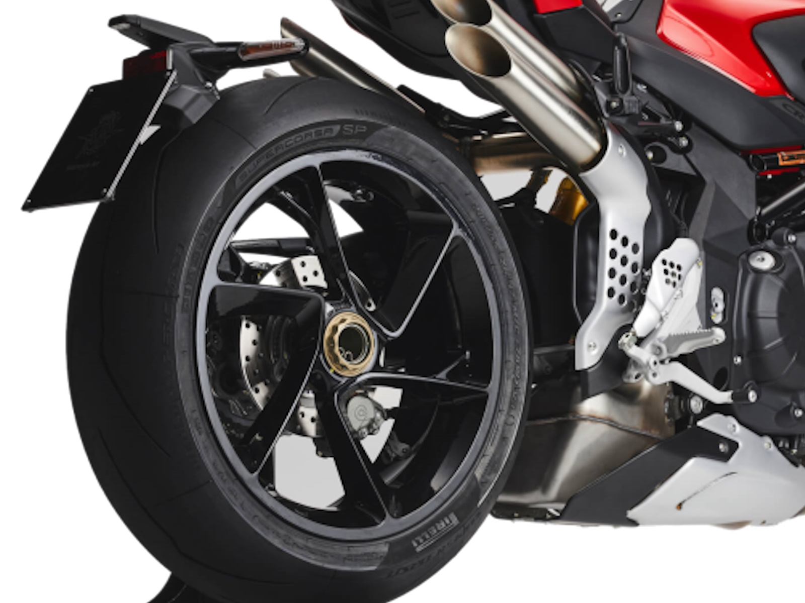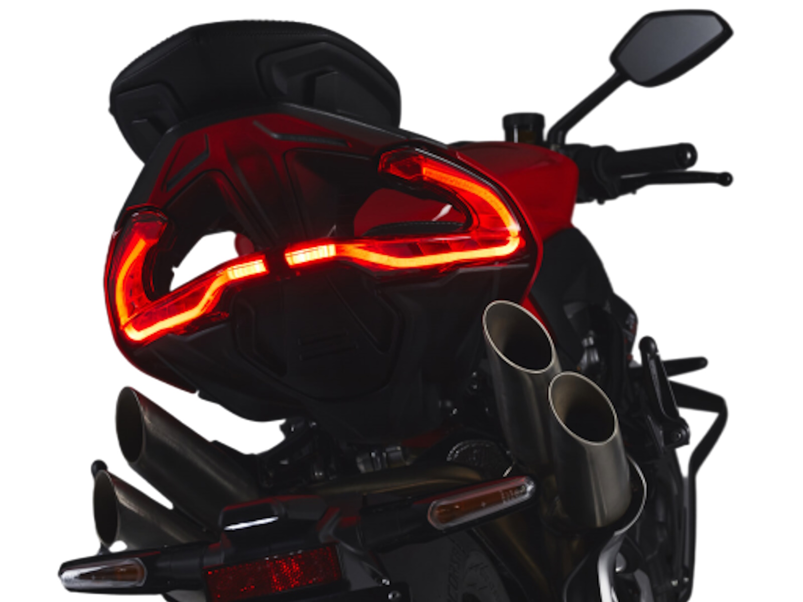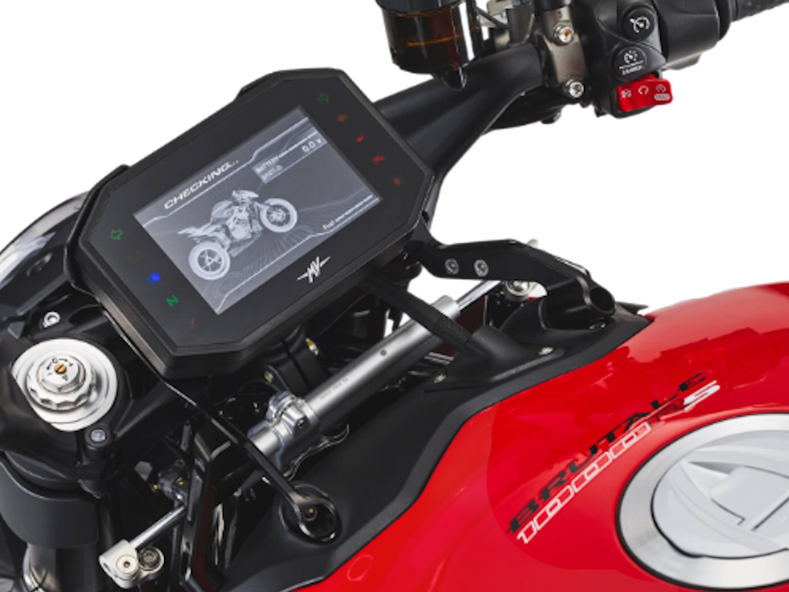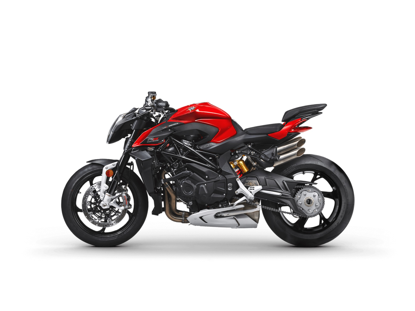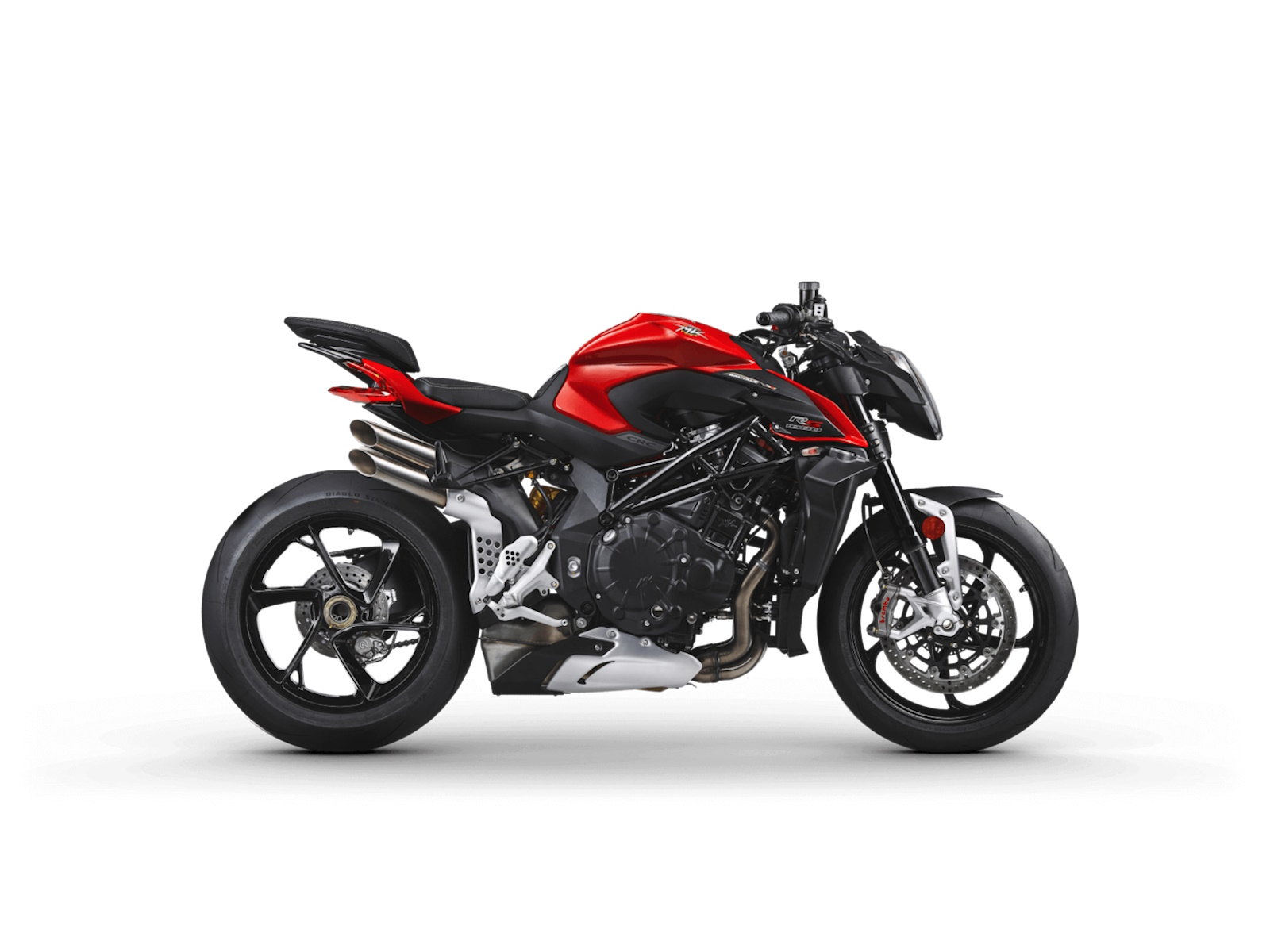 Lighter crankshaft - New combustion chamber Lighter pistons - Titanium connecting rods Dashboard TFT 5.5” color display - Cruise control Bluetooth - GPS - MV Ride App for navigation mirroring, app-controlled engine, suspension and rider aids setup - Launch Control - FLC (Front lift control) - Mobisat anti-thelf system with geolocation