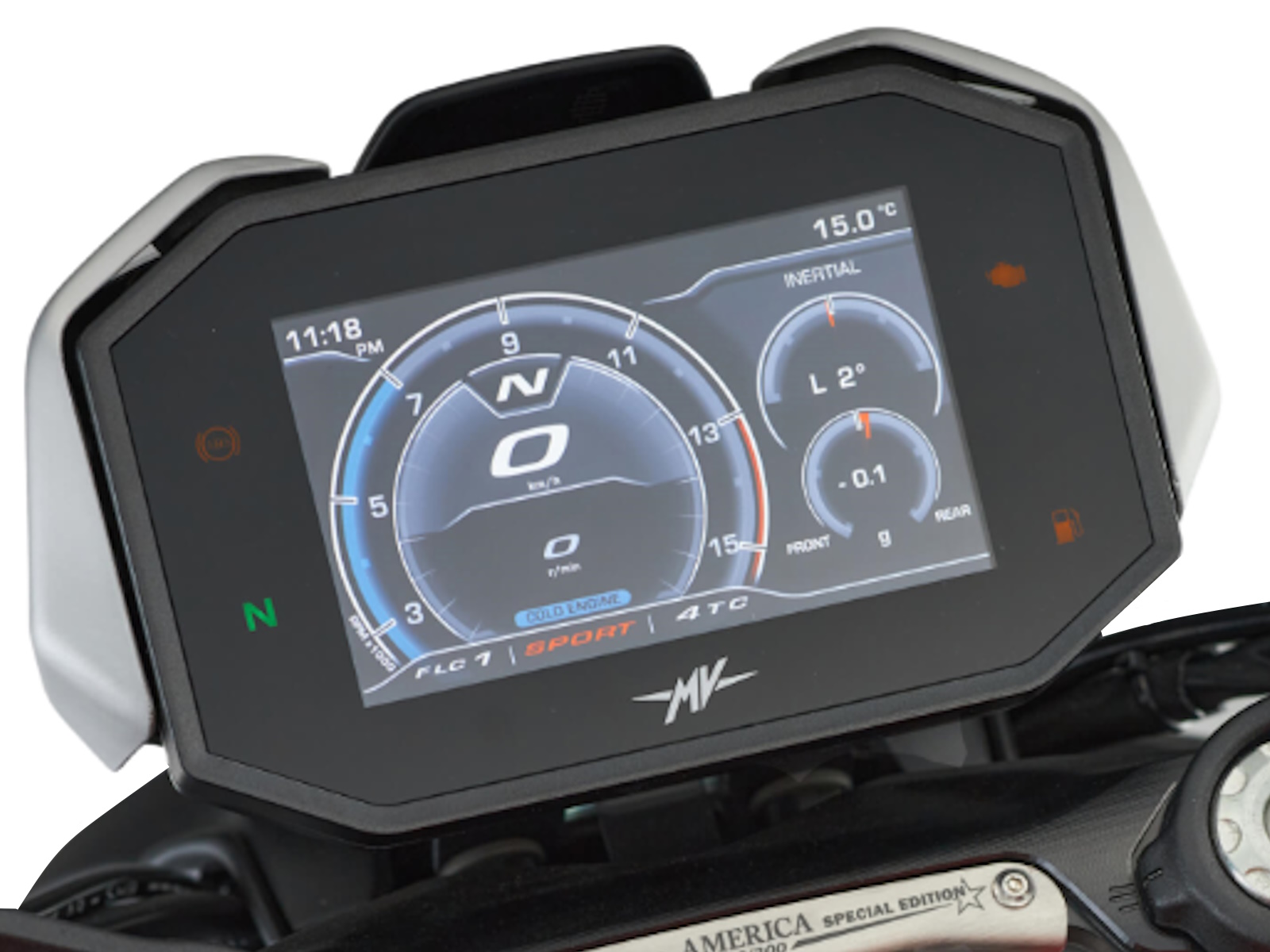 - The 5.5” TFT display stands out for its excellent readability in any light condition. It also comes complete with updated software, now even easier to use, and interfaces with the MV Ride App. The Mobisat system with GPS protects the motorcycle against theft.