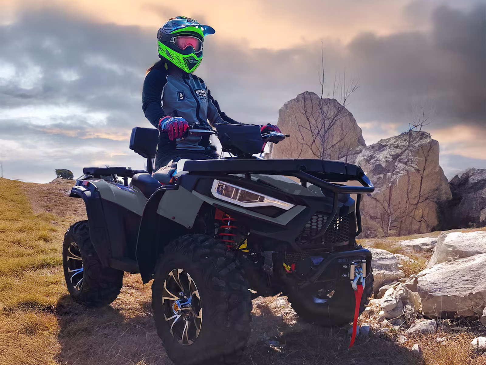Tackle your to-do list with the Massimo MSA 450F, a mid-size 4x4 ATV that delivers the perfect blend of power and value.1 It’s built around a durable 352cc, 25 HP fuel-injected engine that provides reliable performance for work or play.2 With On-Demand 4WD, 11 inches of ground clearance, and rugged 25-inch tires, you can confidently navigate challenging terrain.3 This ATV comes ready to work with a 3,000lb winch, a comfortable passenger backrest, durable front and rear racks, and a protective front bumper, offering a feature-packed machine at an unbeatable price.