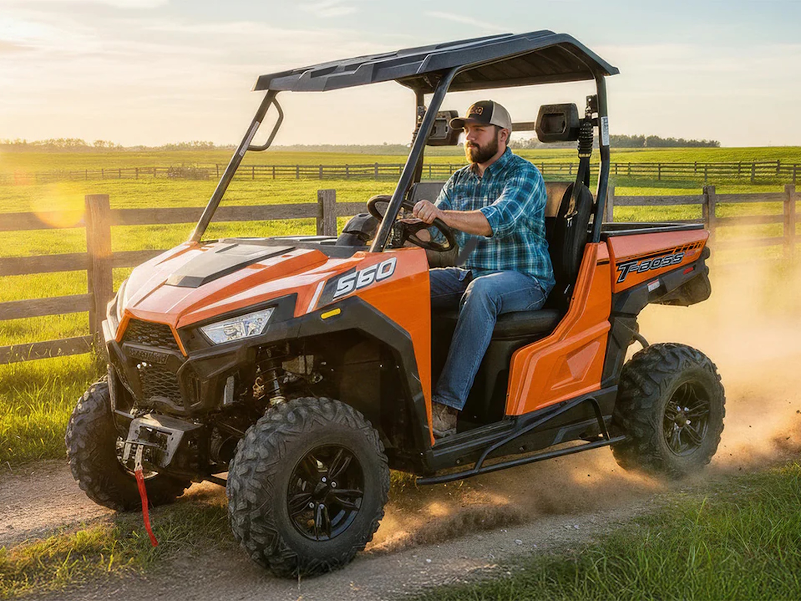 Discover the Massimo T-Boss 560 Base, a powerful and versatile 4x4 UTV designed for both work and recreation. It's equipped with a reliable 33 HP, 493cc EFI engine and a selectable 2WD/4WD system with a locking differential. This machine comes loaded with premium features that are options on other brands, including a 10-inch touchscreen with front and rear cameras, a 3000lb front-mounted winch, and a piston-assisted dumping cargo bed. With its independent suspension and 1,200lb towing capacity, the T-Boss 560 Base delivers unbeatable performance and value for any task.
