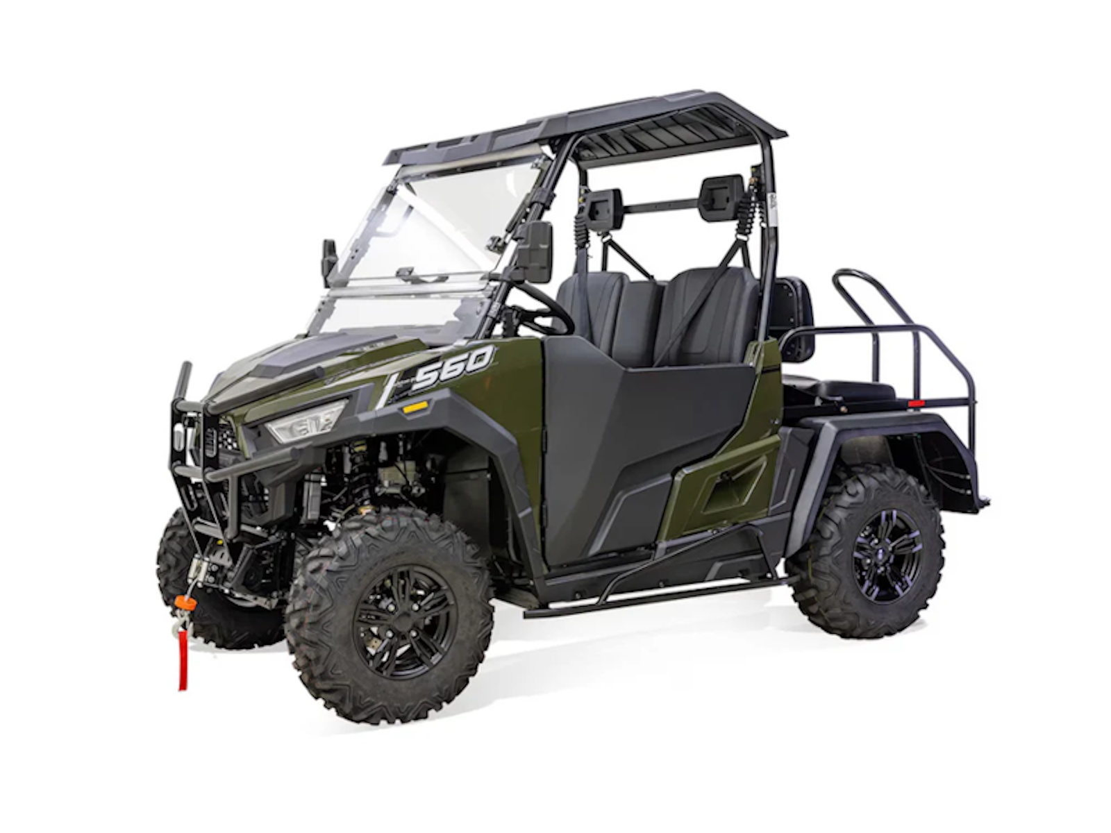 Experience the perfect fusion of recreation and utility with the Massimo T-Boss 560X Golf UTV. This premium side-by-side is designed for the course and the community, powered by a reliable 493cc, 33 HP EFI engine. It comes fully loaded with a 7-inch touchscreen display, a versatile foldable rear seat that converts for extra cargo space, and a full cab enclosure with a flip windshield and hard doors for all-weather comfort. A standard front winch and aggressive tires ensure it's always ready for any task, delivering an unmatched combination of luxury, technology, and rugged capability.