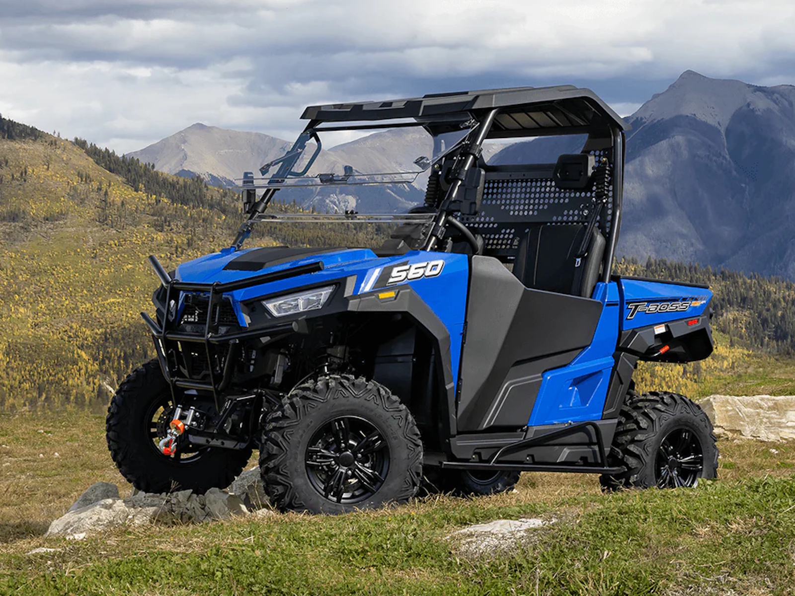 The Massimo T-Boss 560 is the ultimate sport-utility UTV, blurring the lines between work and play. It is powered by a robust 33 HP, 493cc EFI engine with selectable 4WD, giving you the confidence to conquer any trail or task. This side by side comes loaded with the industry's best standard equipment, including a hard top roof, tilting full windshield, and ABS half doors. It also features premium technology like a 10-inch touchscreen with front and rear cameras, plus a powerful 3000lb winch, ensuring you’re ready for any adventure.