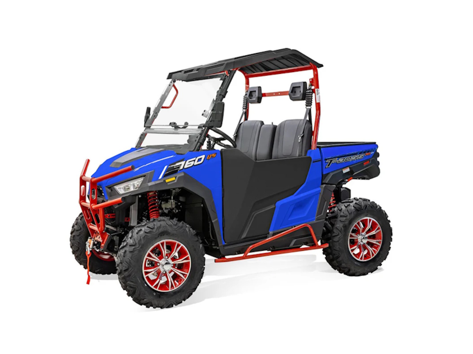 Middleweight Class Champ and fan-favorite, the Massimo T-BOSS 760 has the right combination of power, size, agility and flexibility to satisfy off-road enthusiasts and trail explorers. The 585cc 42HP Engine kicks up dirt, while 39lb/ft of Torque and up to 1500lb towing capacity gets you (and your friends) to the finish line. With a footprint that’s 57 inches wide, and a 72 inch wheelbase, the T-BOSS 760 stays planted and composed in sand, mud, snow and rock. Oversized 27in All-Terrain tires front and back, paired with Four Corner Independent Suspension let you make tracks and set pace on the trails. Shaft-driven 4WD with locking differentials means less time stuck in the mud, and more time slinging it.