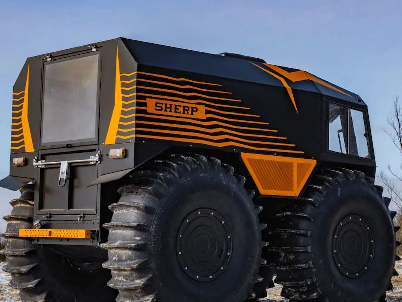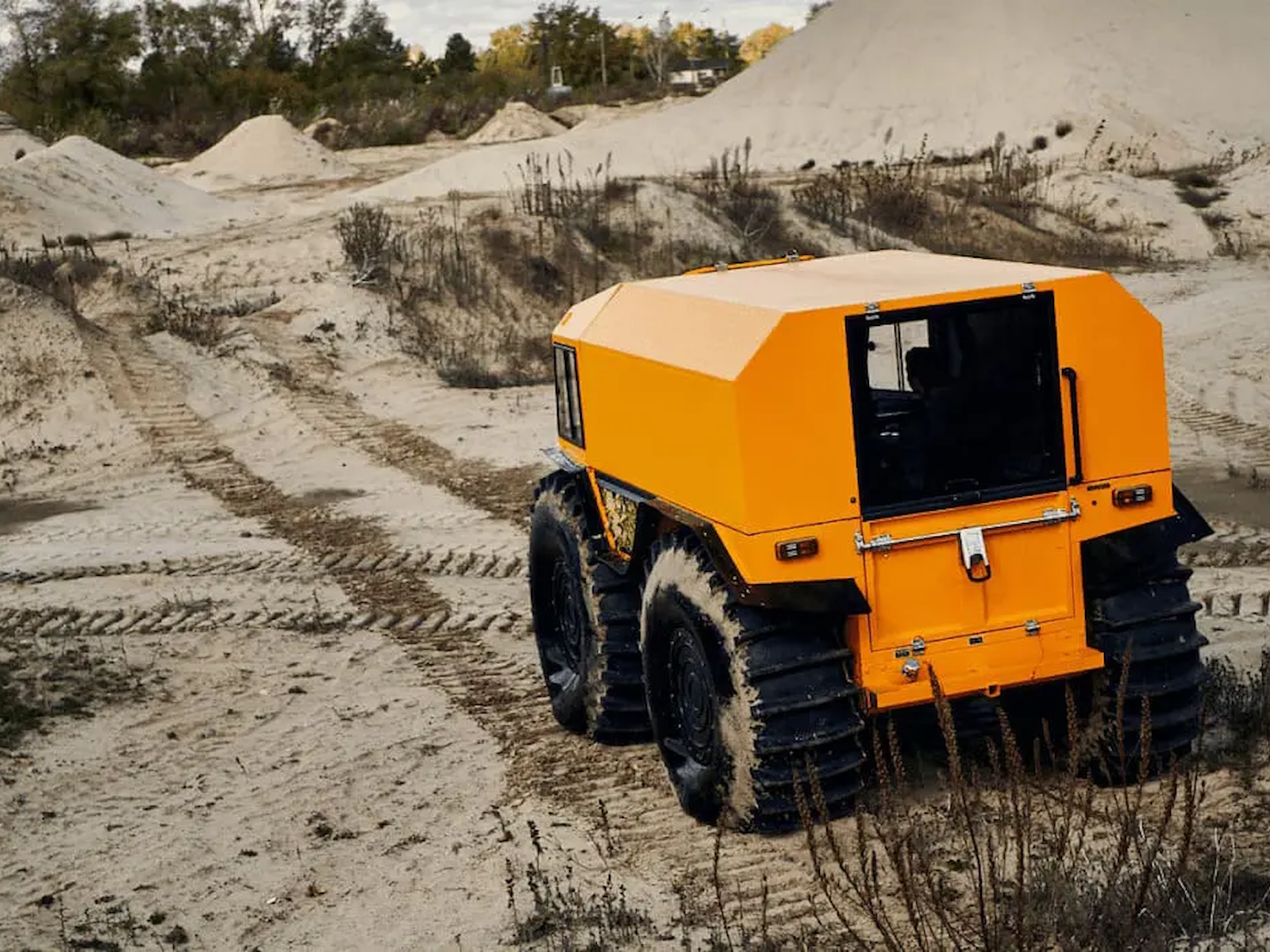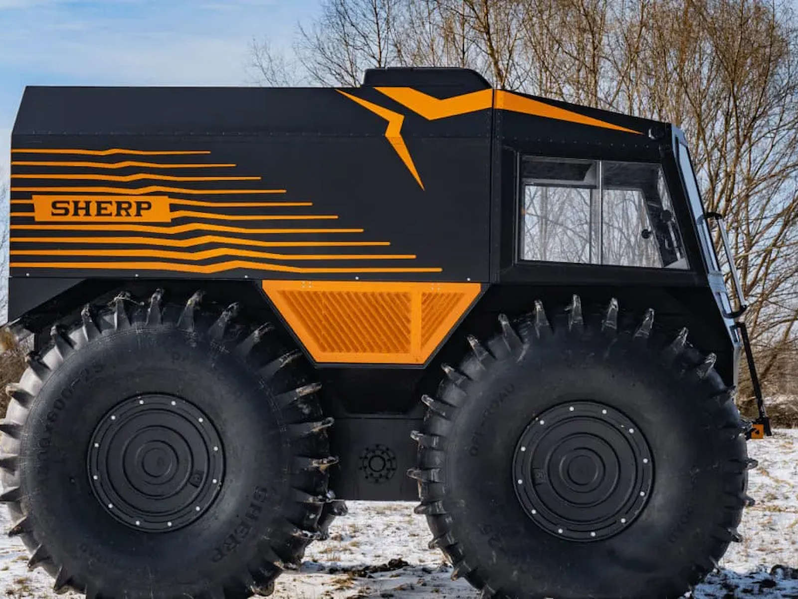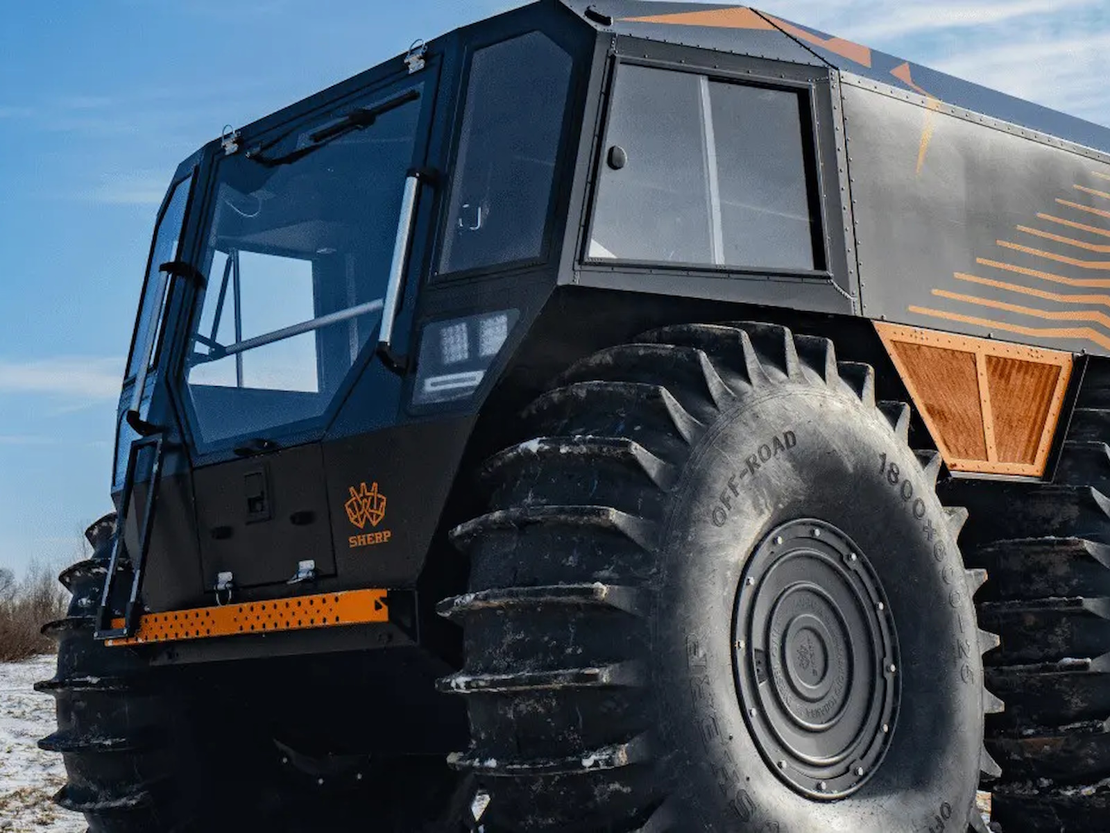 SHERP doesn't damage the soil while driving due to the lowest ground pressure indexes among amphibious vehicles: 0.07-0.15 kg/cm² (0.9-2.1 lb/in²).
