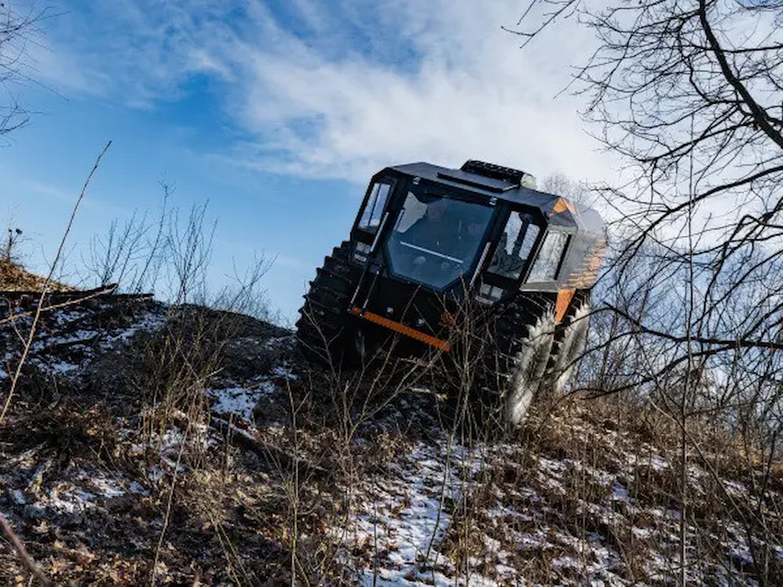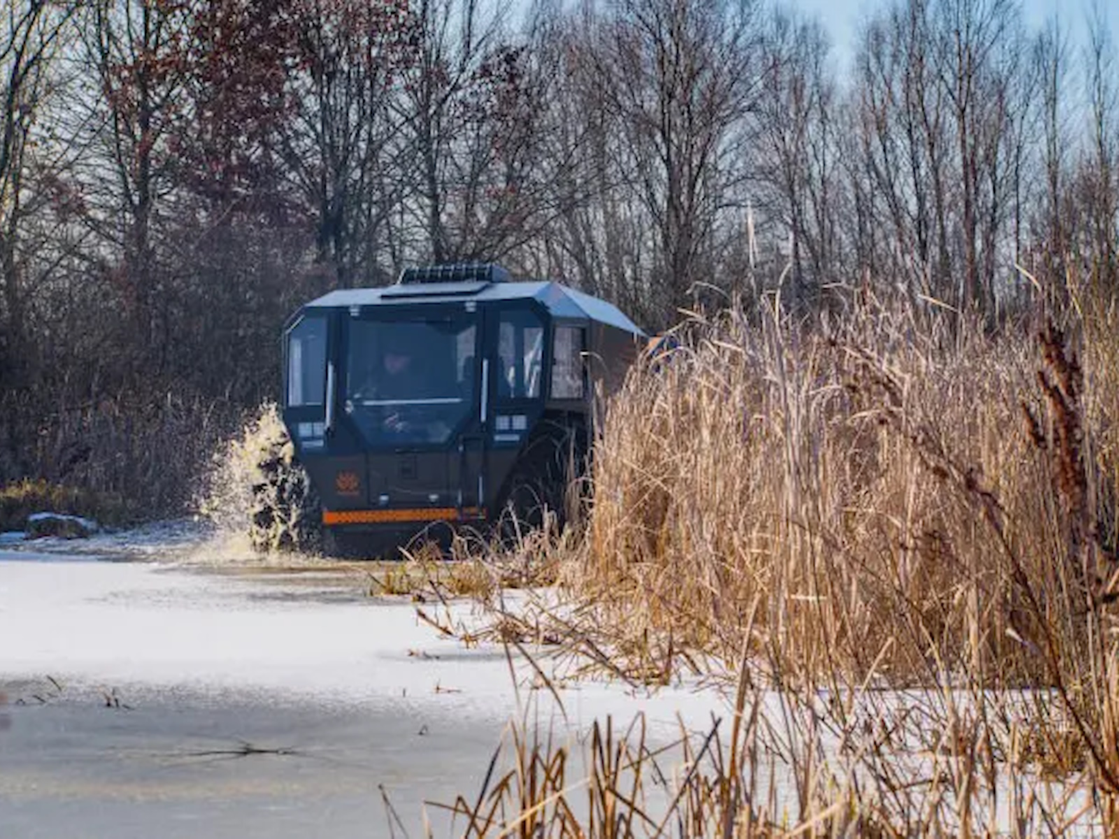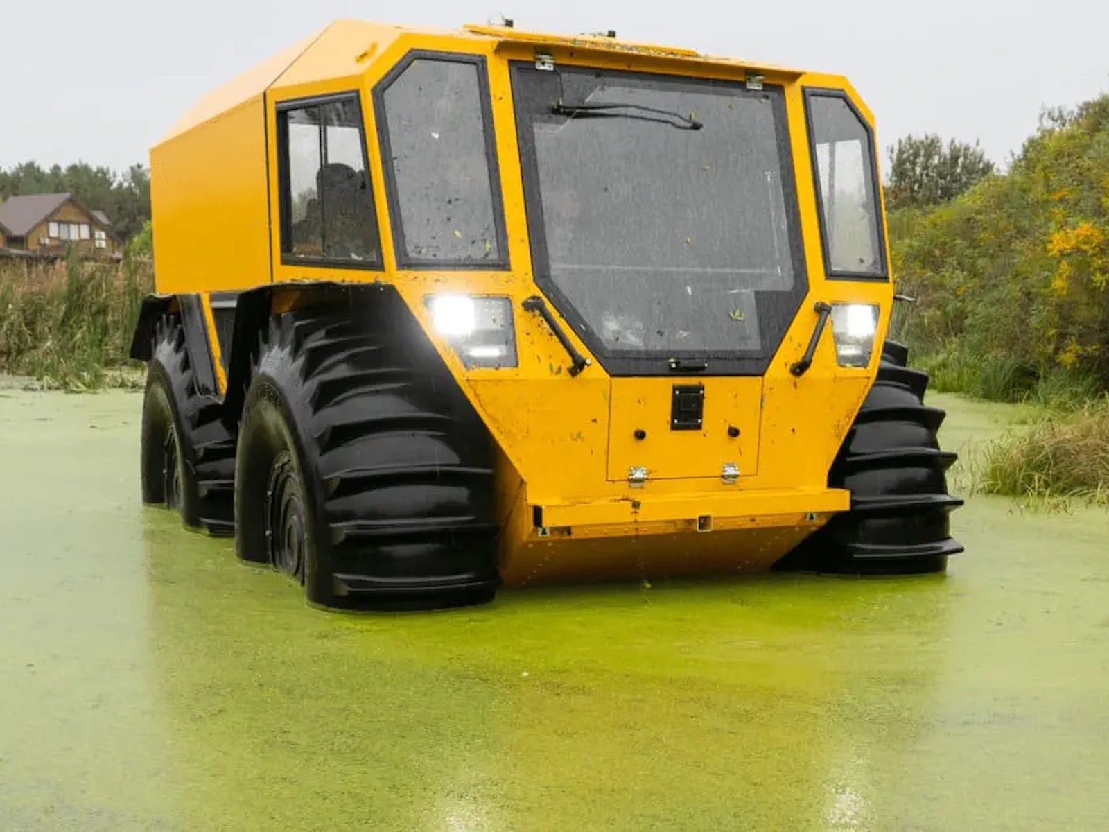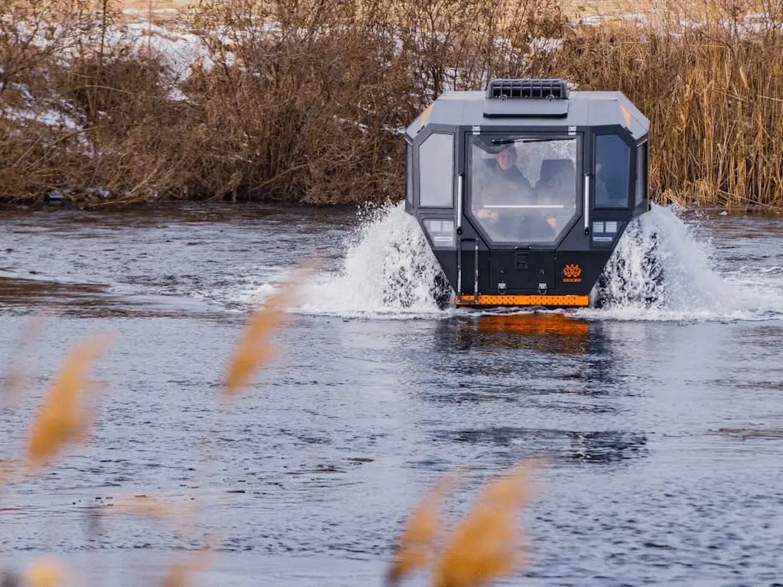 SHERP doesn't damage the soil while driving due to the lowest ground pressure indexes among amphibious vehicles: 0.07-0.15 kg/cm² (0.9-2.1 lb/in²).