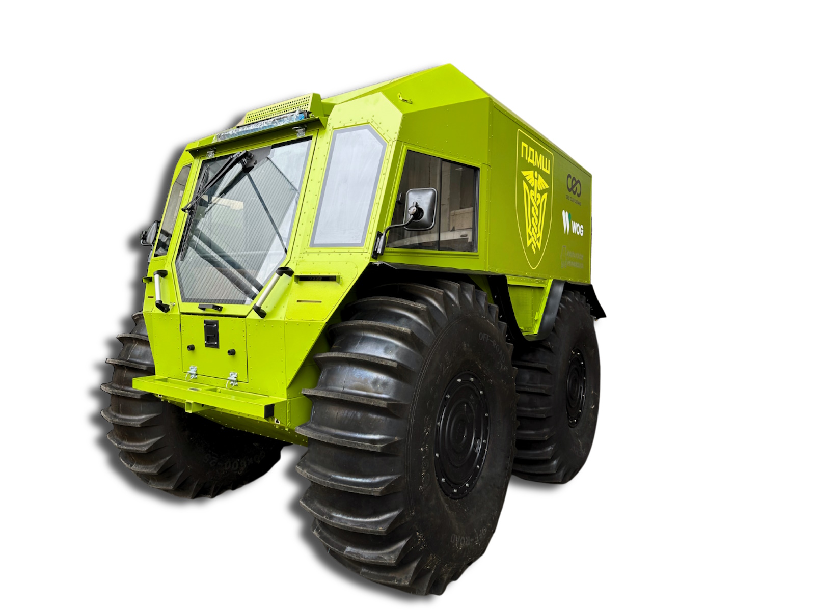 It is able to travel off-road, through marshes, snow, fallen trees, dense forests, unstable ground and other difficult terrain to provide medical care in conditions where conventional vehicles cannot reach.