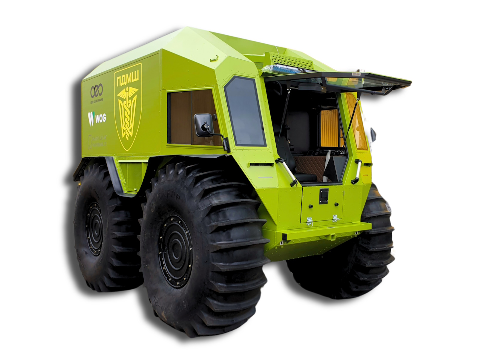 The all-terrain vehicle is equipped with emergency communication systems: a radio station, special light and sound signals, red and blue strobe lights, and GPS navigation, which allows it to be used as a command center.