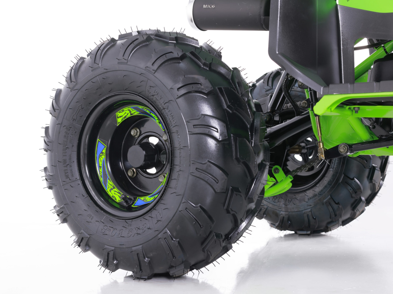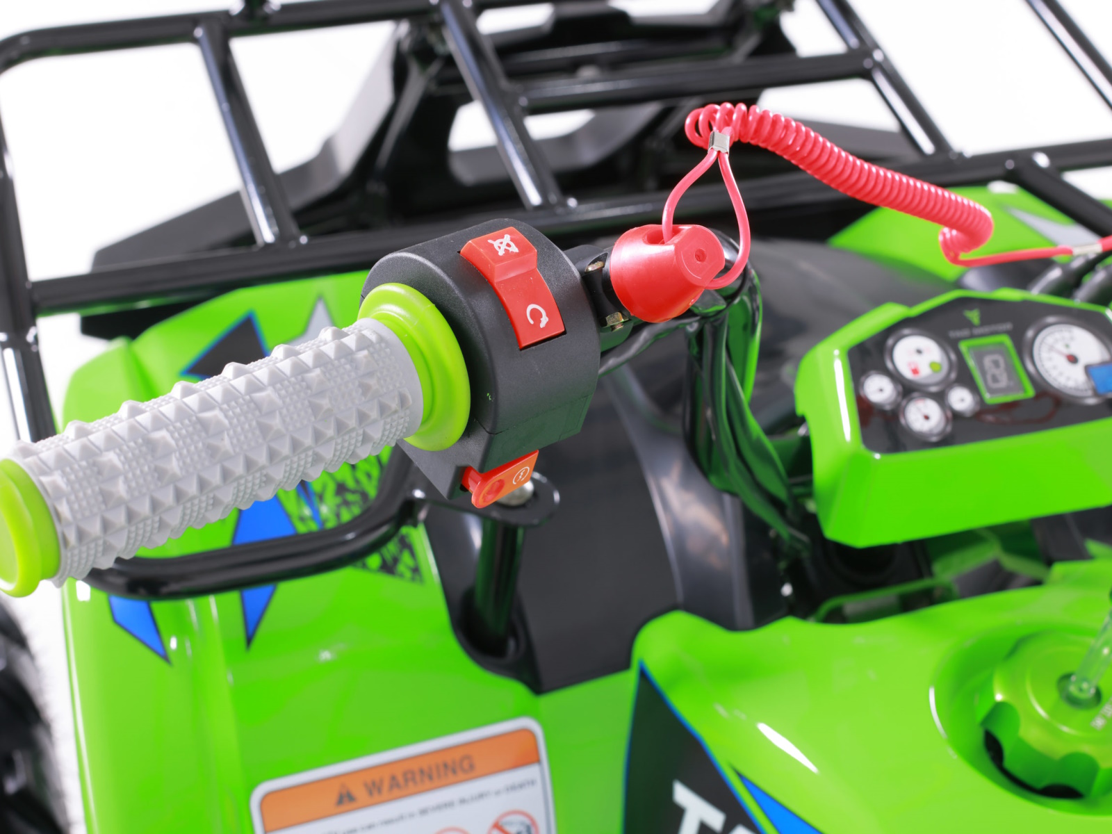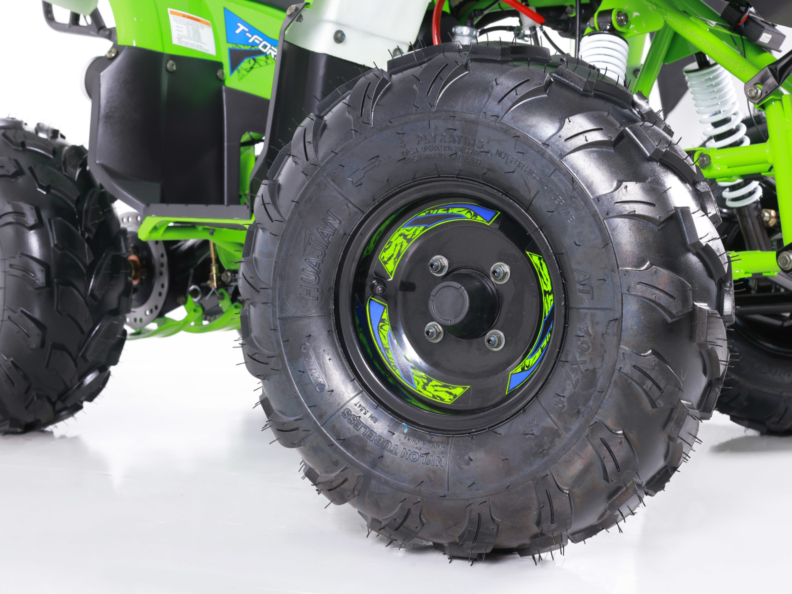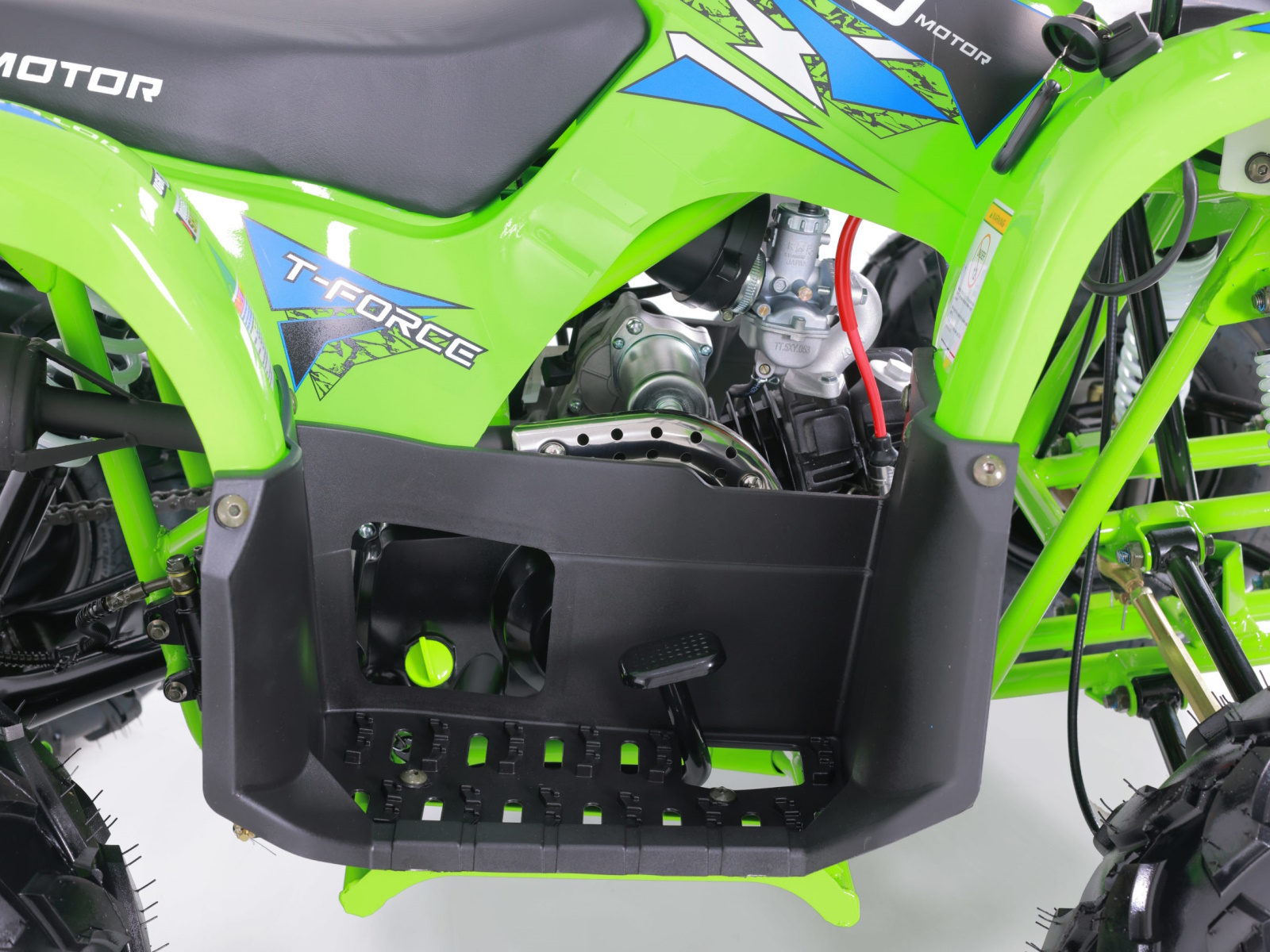 Still stocked with our 107cc 4-stroke engine that goes in forward and reverse, the all-new T-Force is mounted with large 8” wheels and tires to drive through any kind of terrain you encounter. And while the T-Force may look aggressive, it still has all of the best safety features such as the remote wireless shut off and an adjustable speed governor, set by supervising adults. You may be able to limit the speed, but you can’t limit the fierceness of the T-Force. Not only does the T-Force look brand new, our new upgraded components make it a top choice for your beginner rider, at an affordable price.