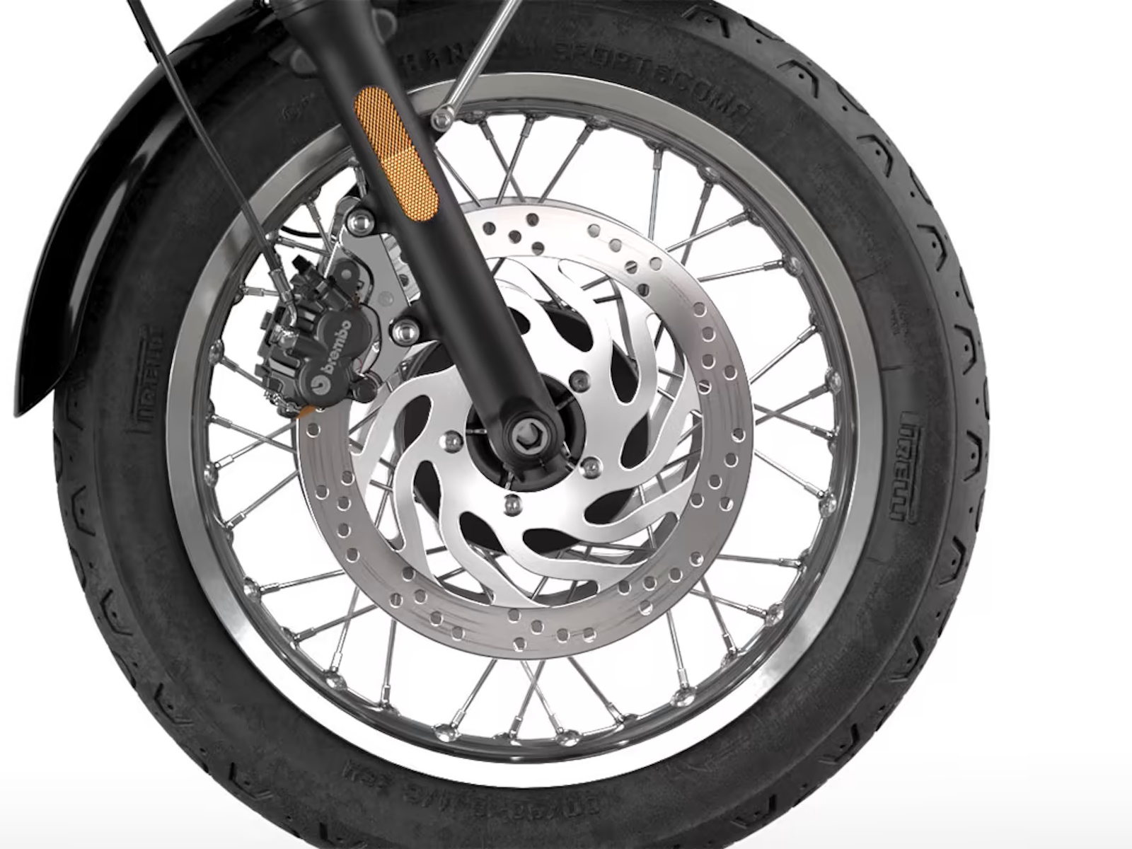 Twin 310mm discs, Brembo 2 piston floating caliper, ABS