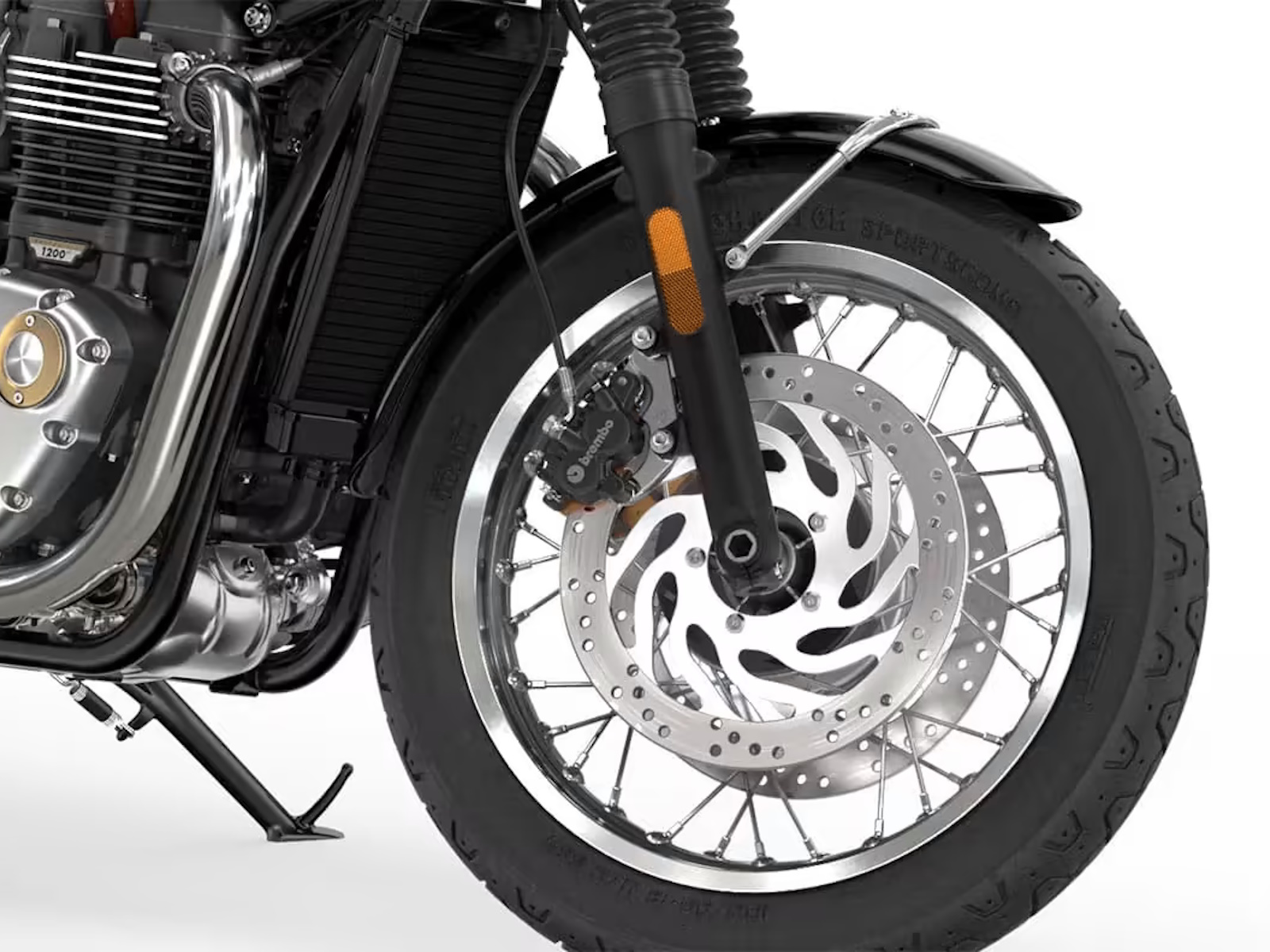Imposing presence, with a tough blacked-out finish, from its engine to its sweeping twin-skin exhaust, and classic wire-spoked wheels, the dark and moody T120 Black is the definition of sophisticated style. - 1200 CC HP TWIN ENGINE