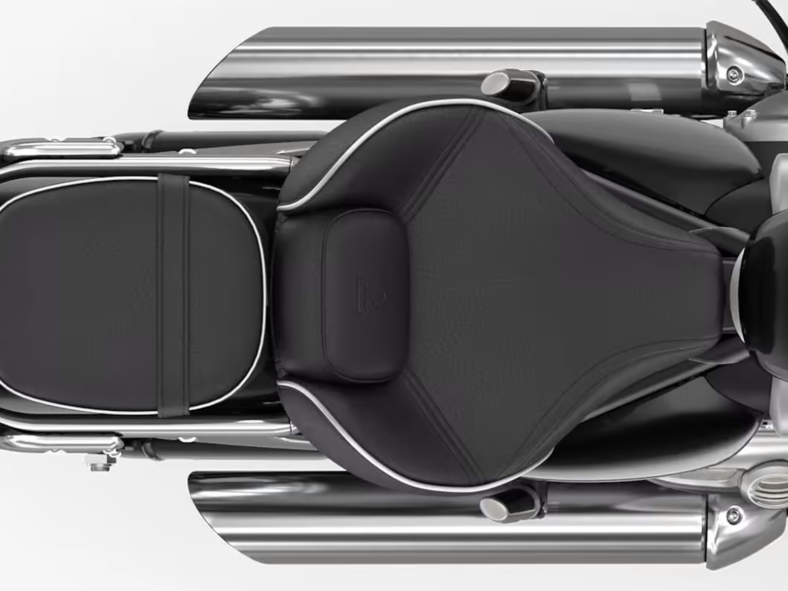 The versatile and interchangeable twin seat setup now features even more comfortable sculpted deep foam construction and separate lumbar support for the rider seat, and 0.4 in thicker foam for the passenger - IMPROVED RIDE AND HANDLING