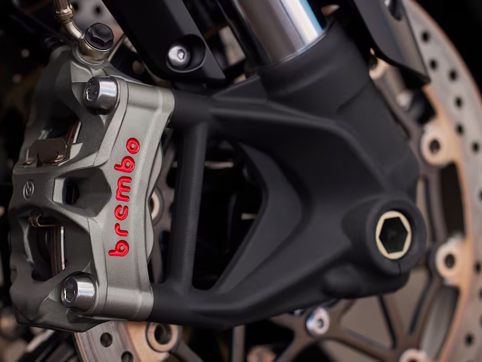 Twin 320mm discs, Brembo M4.32 Stylema® 4-piston monobloc caliper, Optimised Cornering-ABS