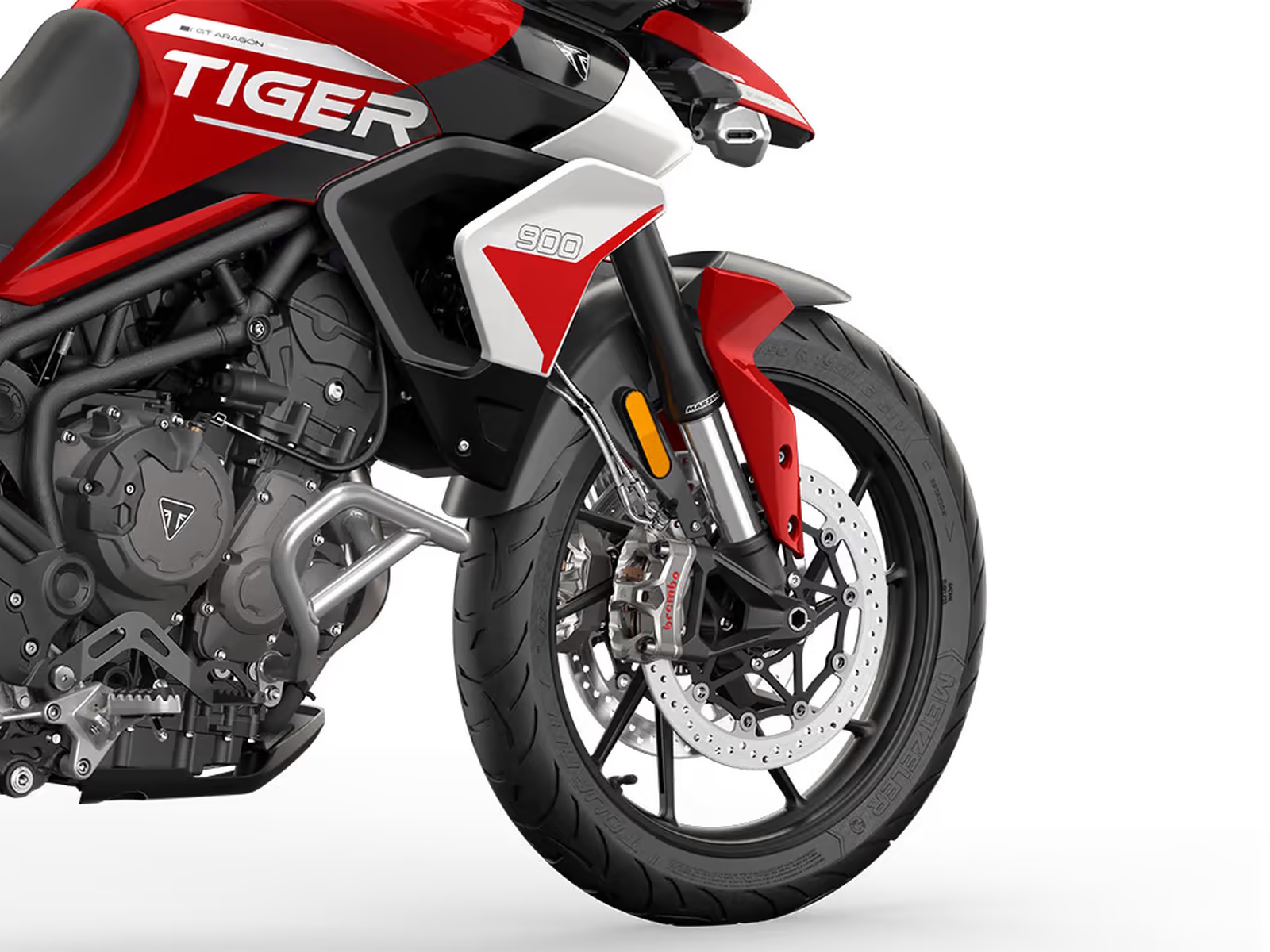 Optimized cornering ABS and Traction Control, TFT instruments and five riding modes offer just a taste of the Tiger 900 GT Aragón Editions class-leading, ride-enhancing technology. - FINISH AND DETAILING