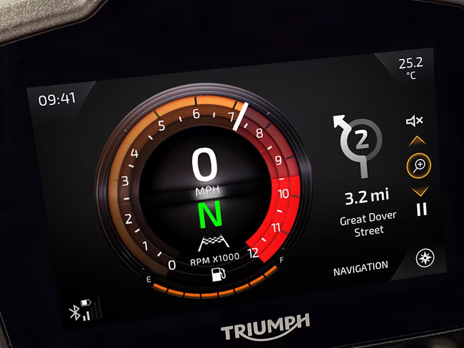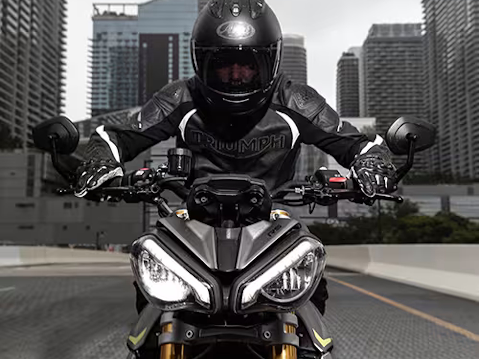 With Triumph's latest generation switchable Optimized Cornering Traction Control, Optimized Cornering ABS, Front Wheel Lift Control, Shift Assist up and down quickshifter, 5 riding modes, and full keyless system. - MY TRIUMPH CONNECTIVITY