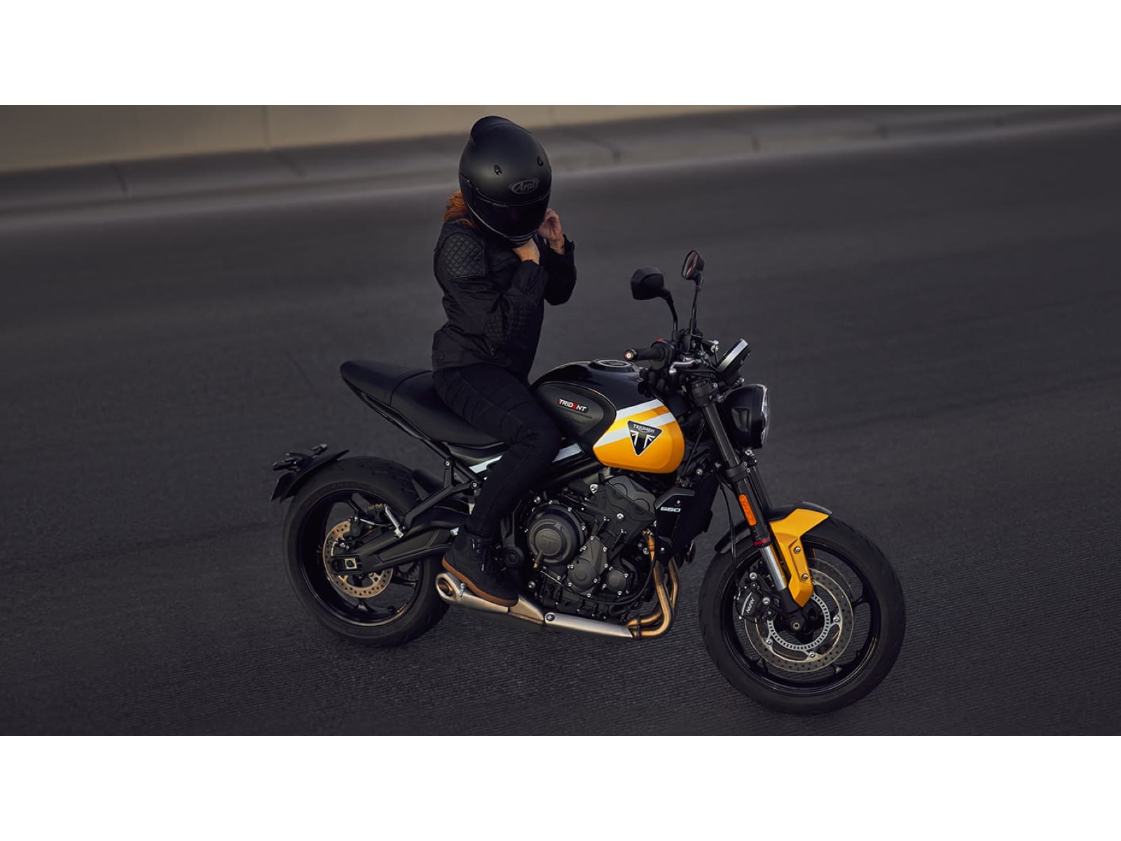 The flexible three-cylinder engine combines low-down torque with a strong midrange and an exciting top-end rush. Add to the mix the very latest in ride-enhancing electronics, and the Trident delivers unrivaled control while retaining its fun character.