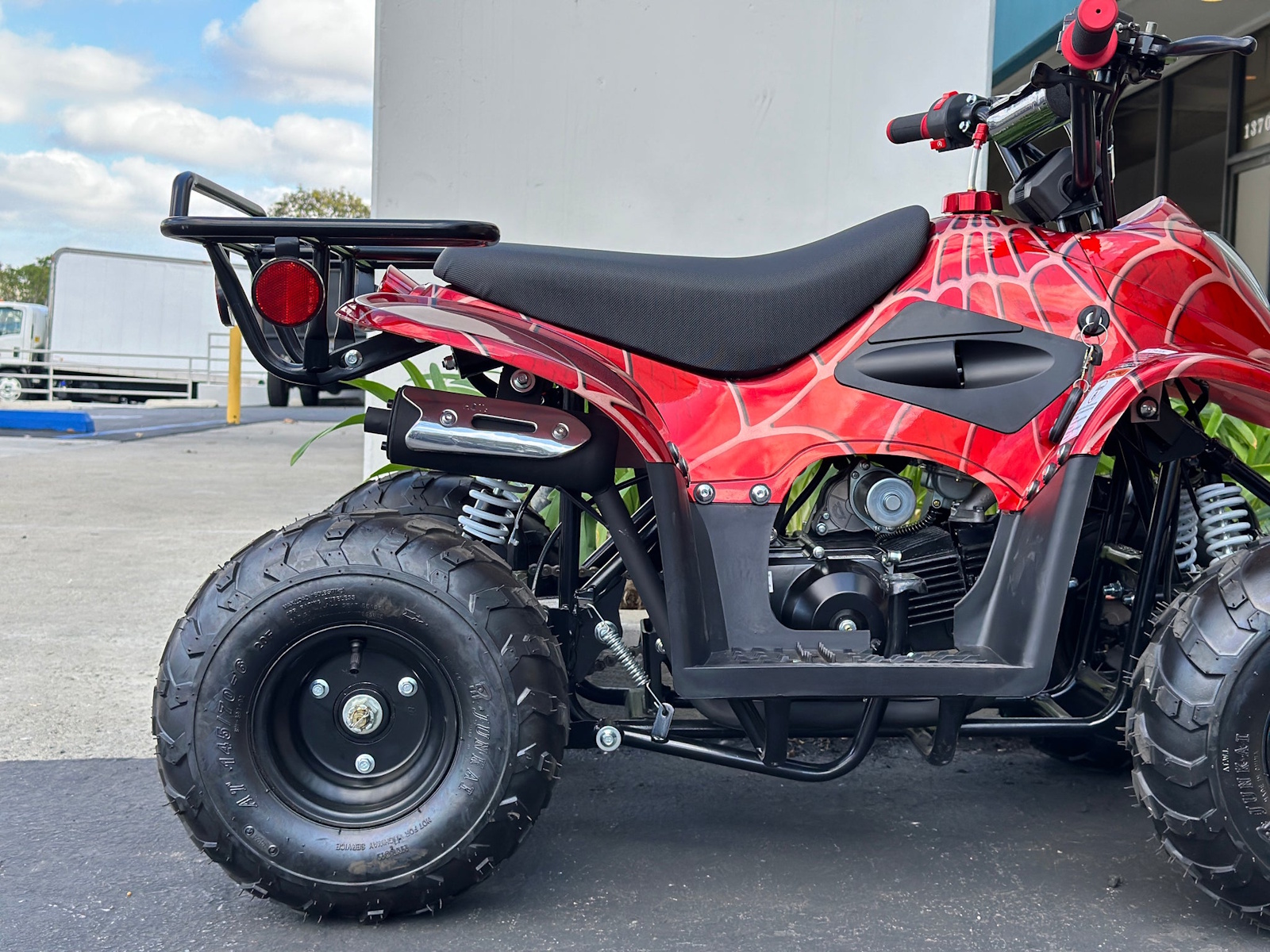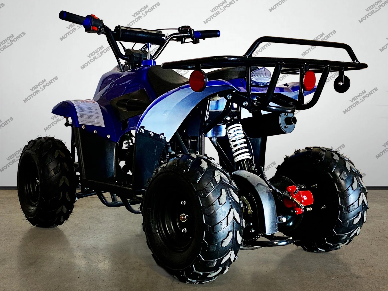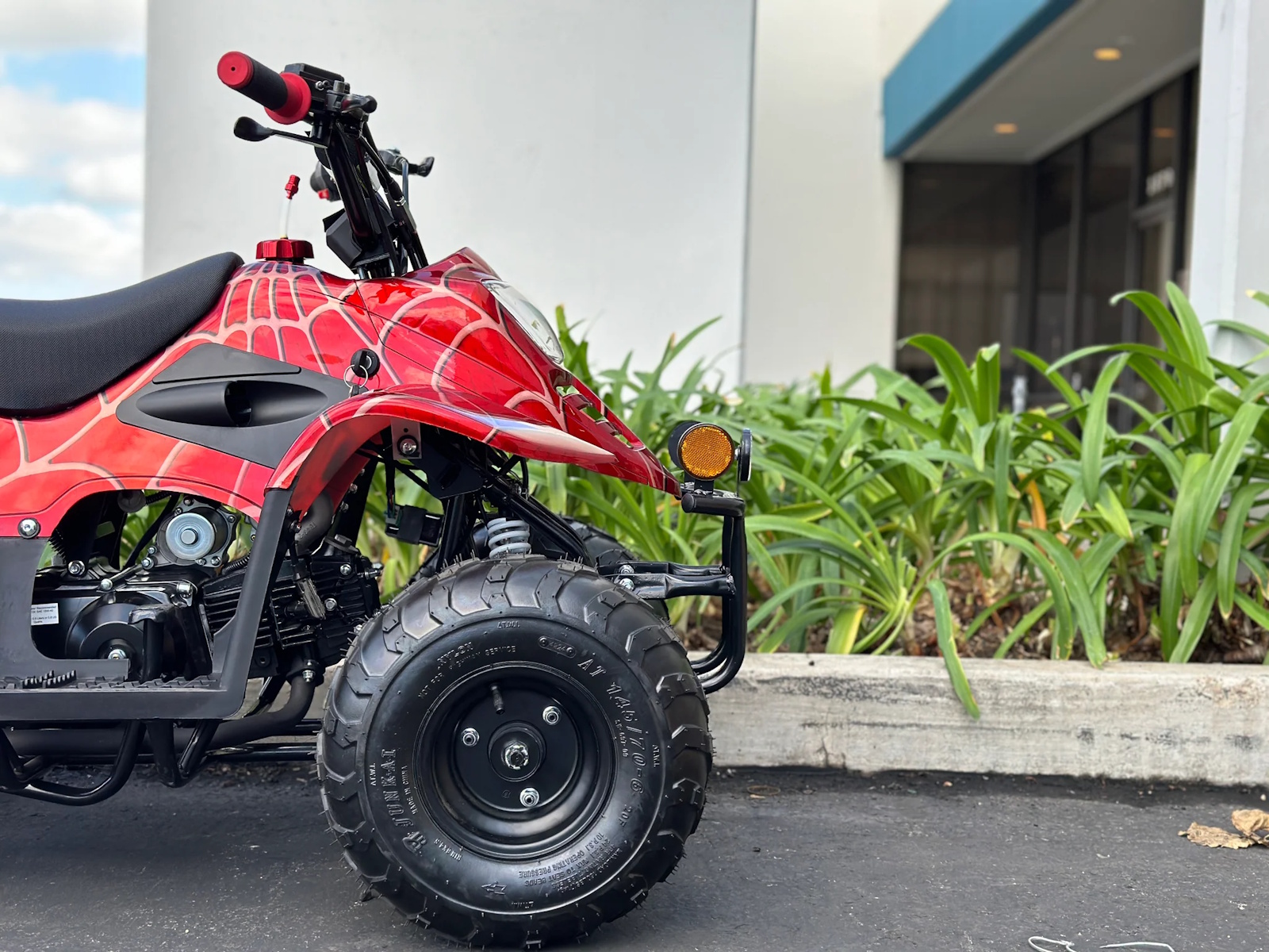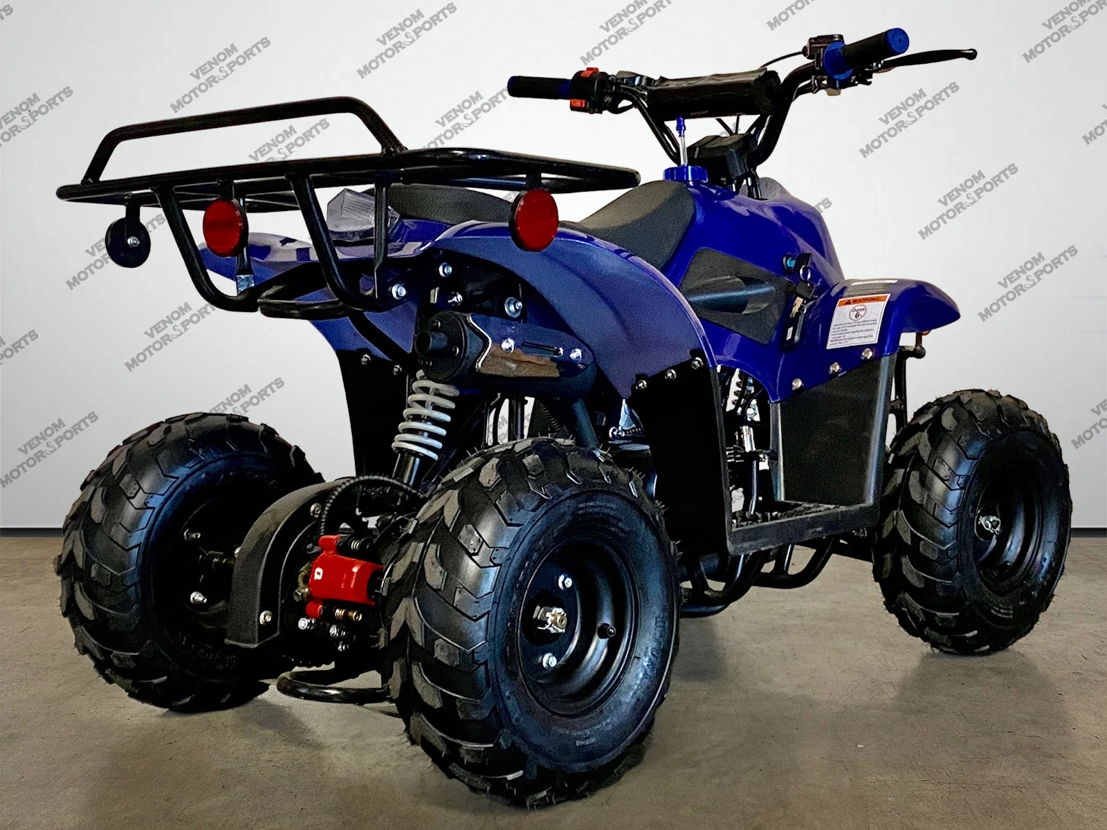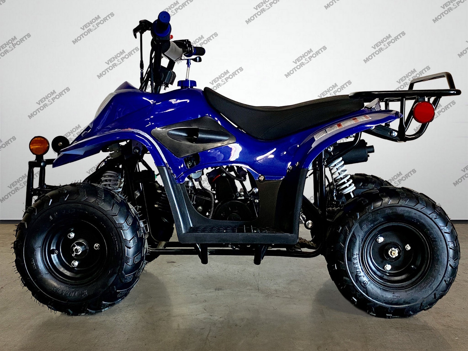 The moccasin 110cc atv was designed with young riders in mind. The atv will have a throttle governor installed to limit the speed on your atv. This allows young riders get comfortable with the atv before allowing full power.