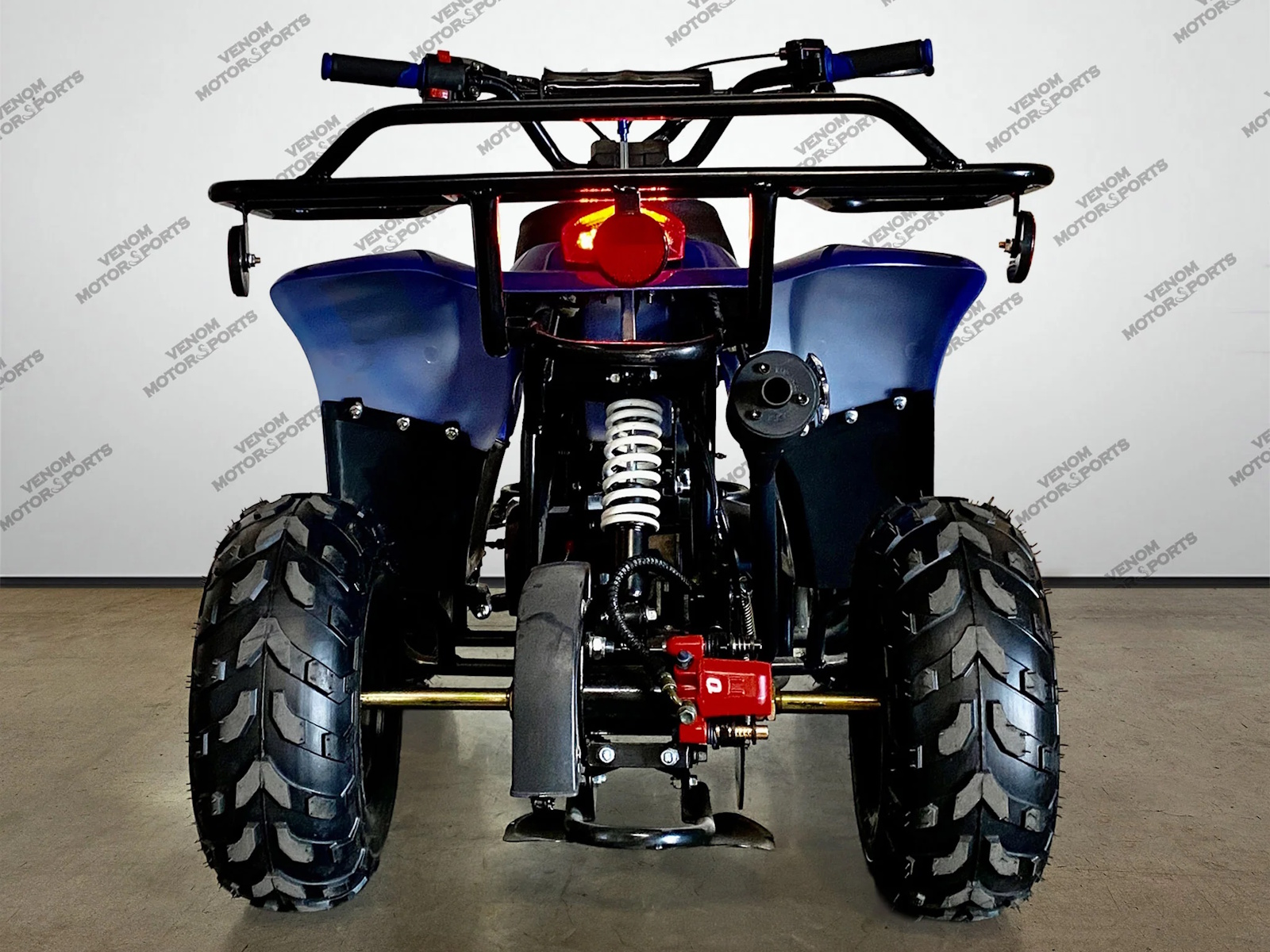 The moccasin 110cc atv has been upgraded with rear hydraulic disk brakes ensuring reliable stopping power and precision control. Engineered for safety and performance, these brakes ensure optimal handling