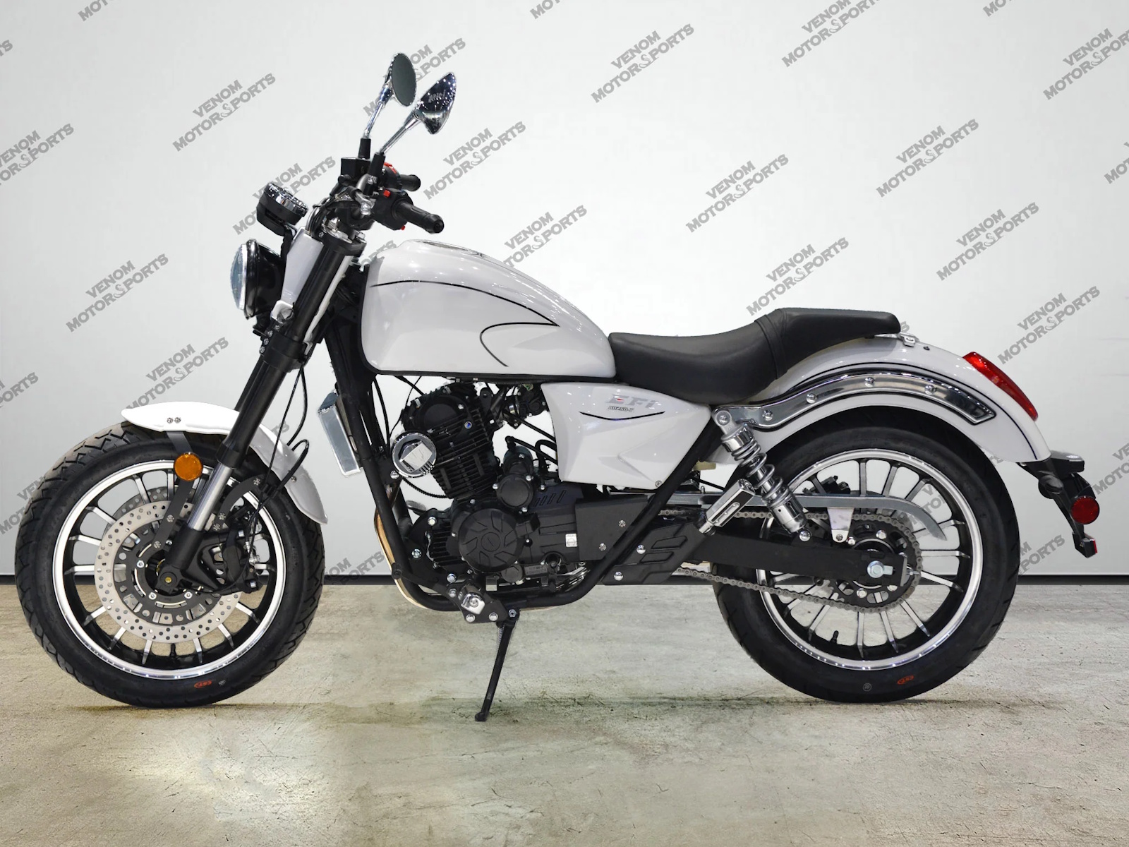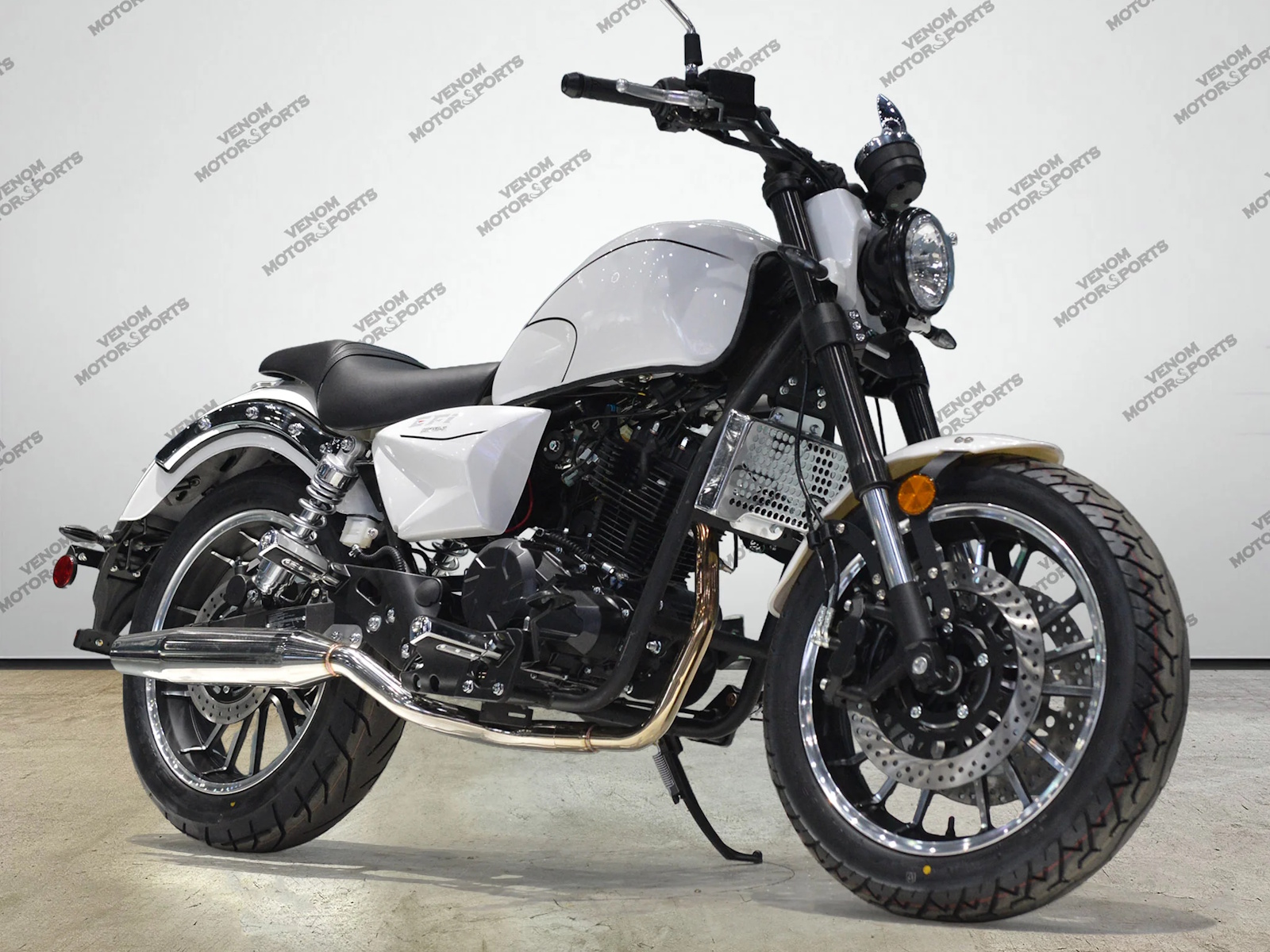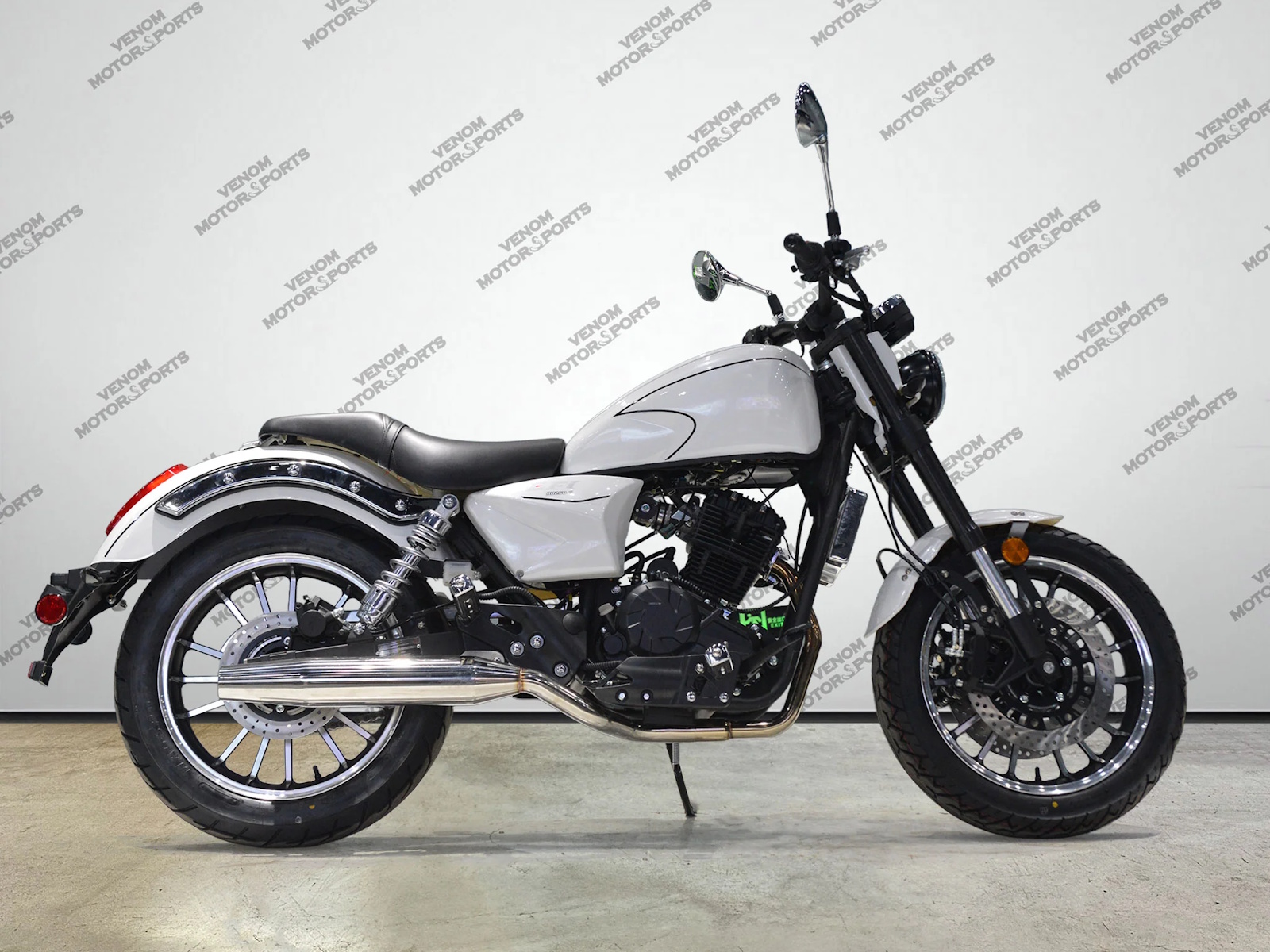 Experience a thrilling, classic ride with the 2023 Venom Cruiser 6-Speed Manual EFI Fuel-Injected Chopper! This one-of-a-kind features LED headlights, Chrome exhaust, 17" Aluminum Alloy Rims, Chrome mirrors, air-cooled engine, and a powerful Fuel-Injected 250cc motor. Get ready to revolutionize your rides with this perfect mix of classic style and modern performance!