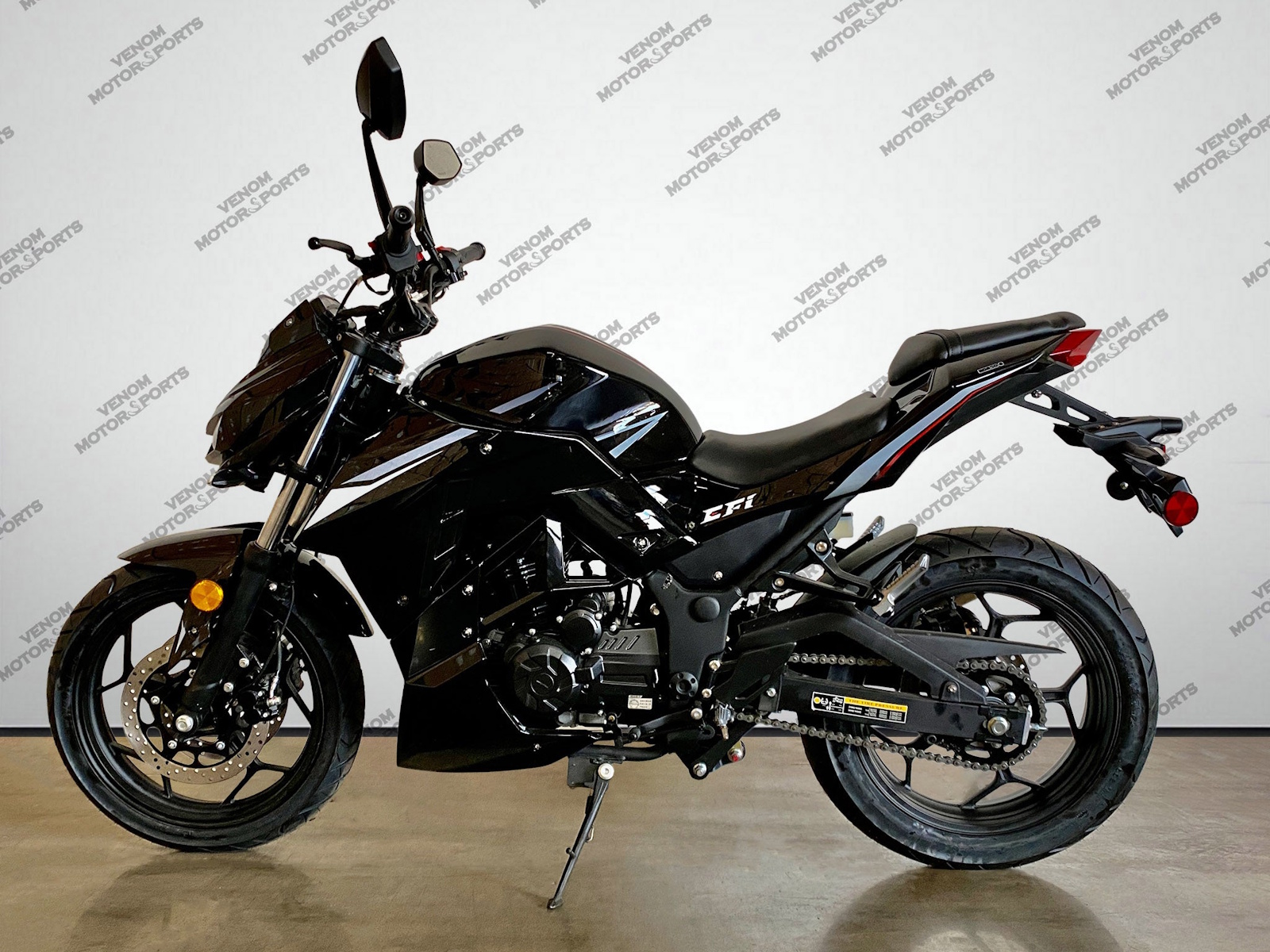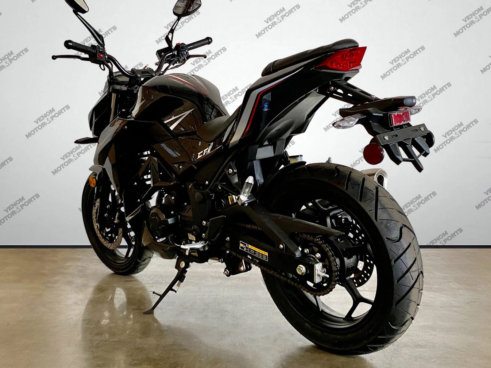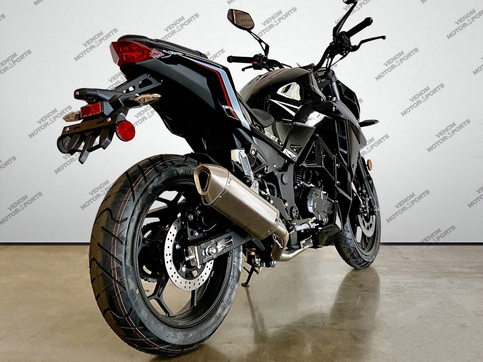 The Venom Z250 is powered by a 250cc single-cylinder, 4-stroke, air-cooled engine, delivering smooth performance and reliable power for both city streets and open roads.
