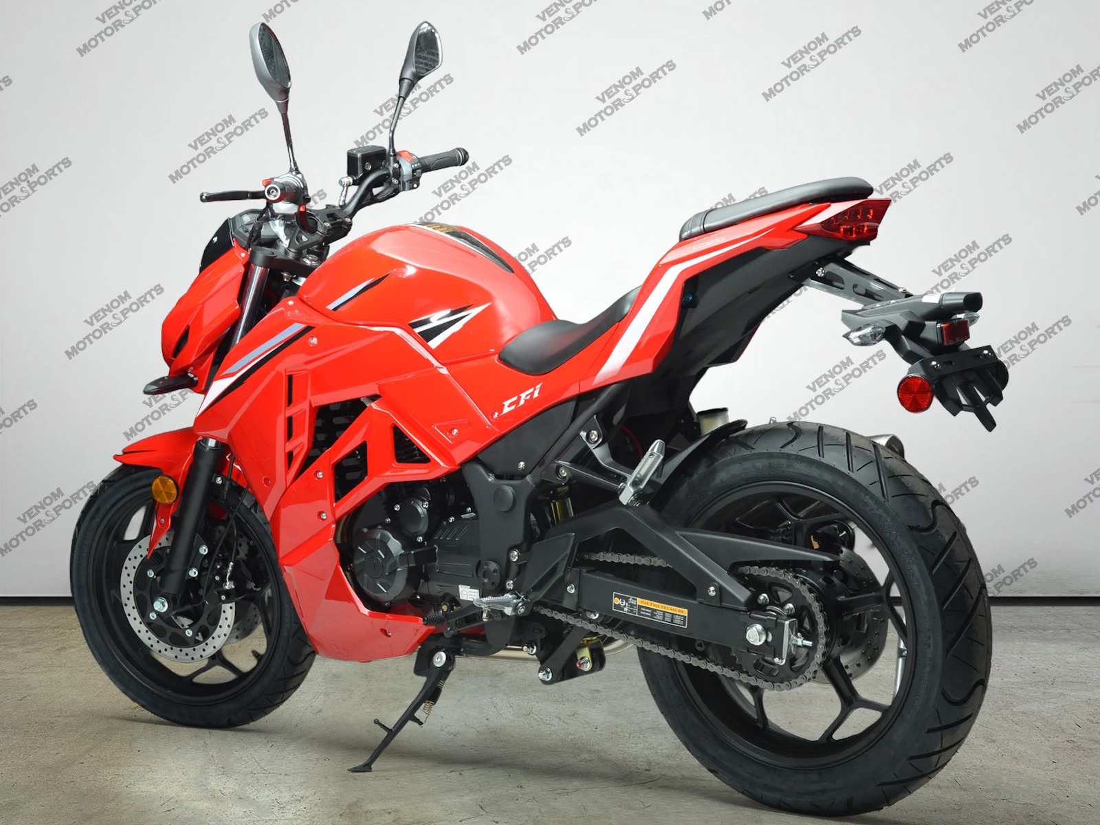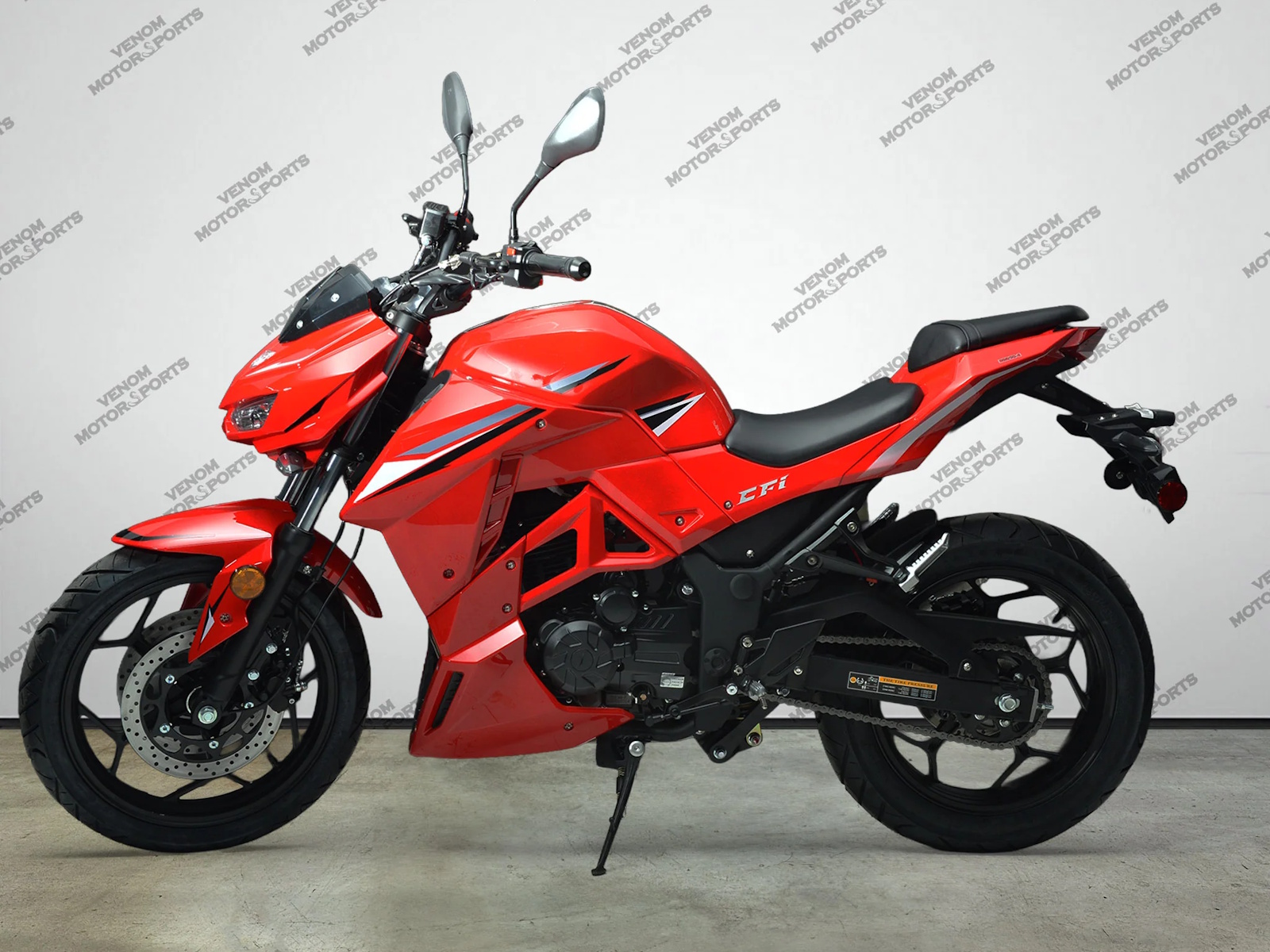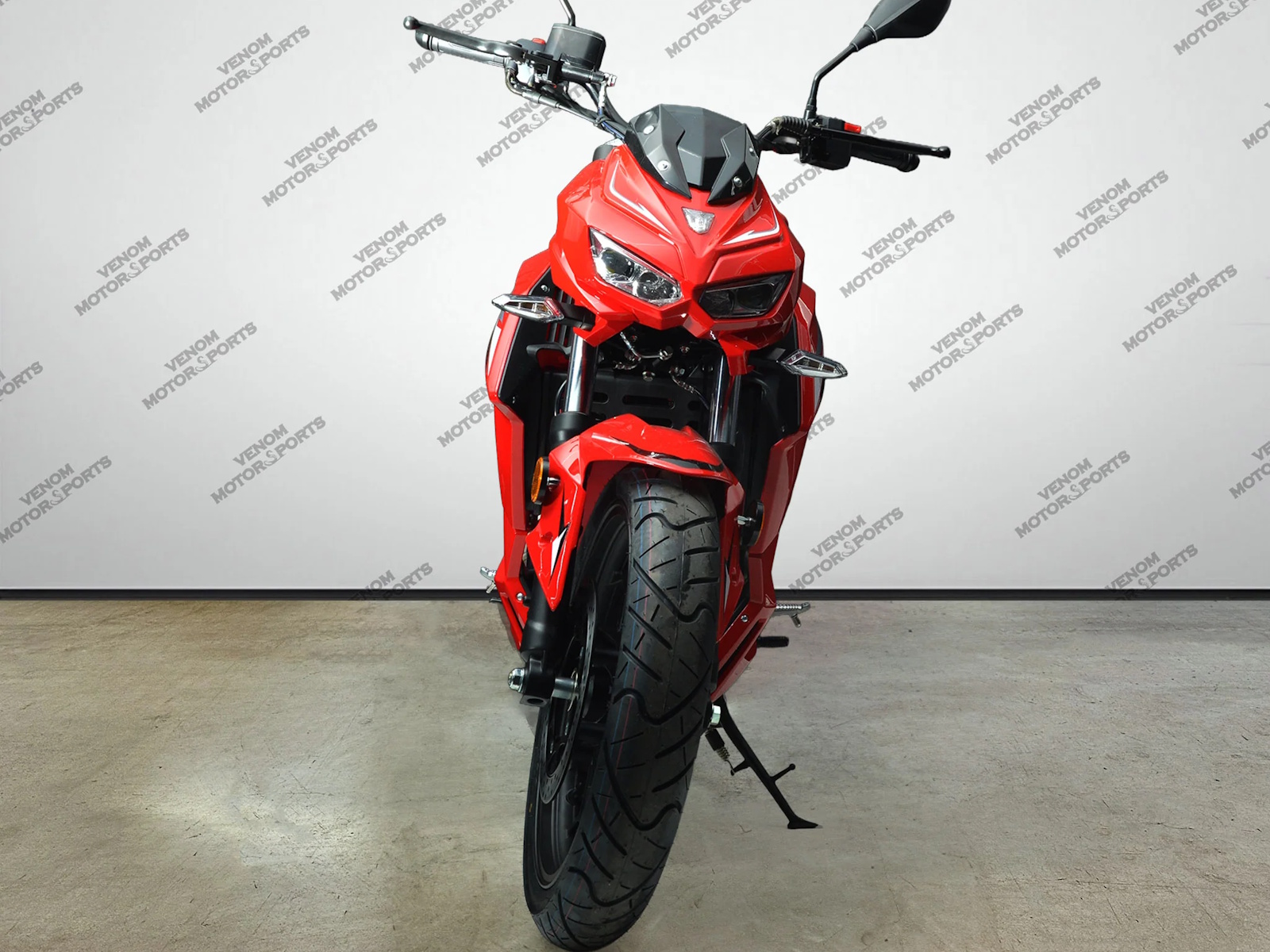The Venom Z250 is powered by a 250cc single-cylinder, 4-stroke, air-cooled engine, delivering smooth performance and reliable power for both city streets and open roads.