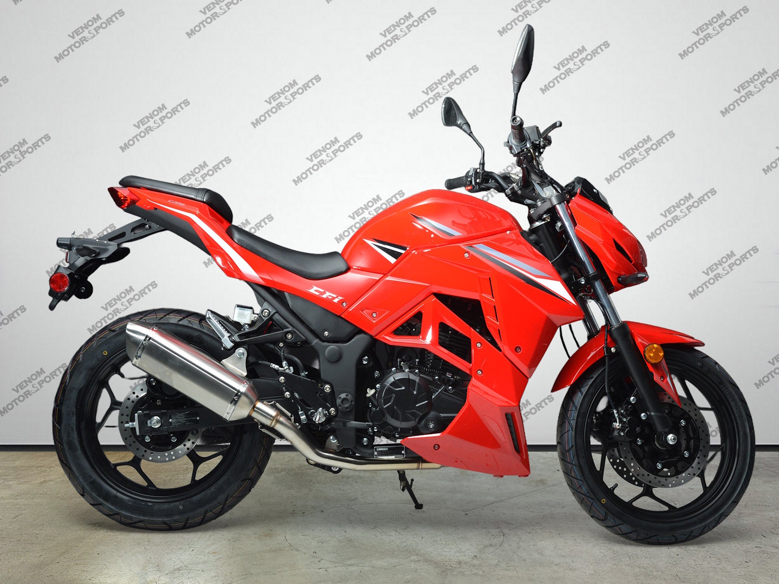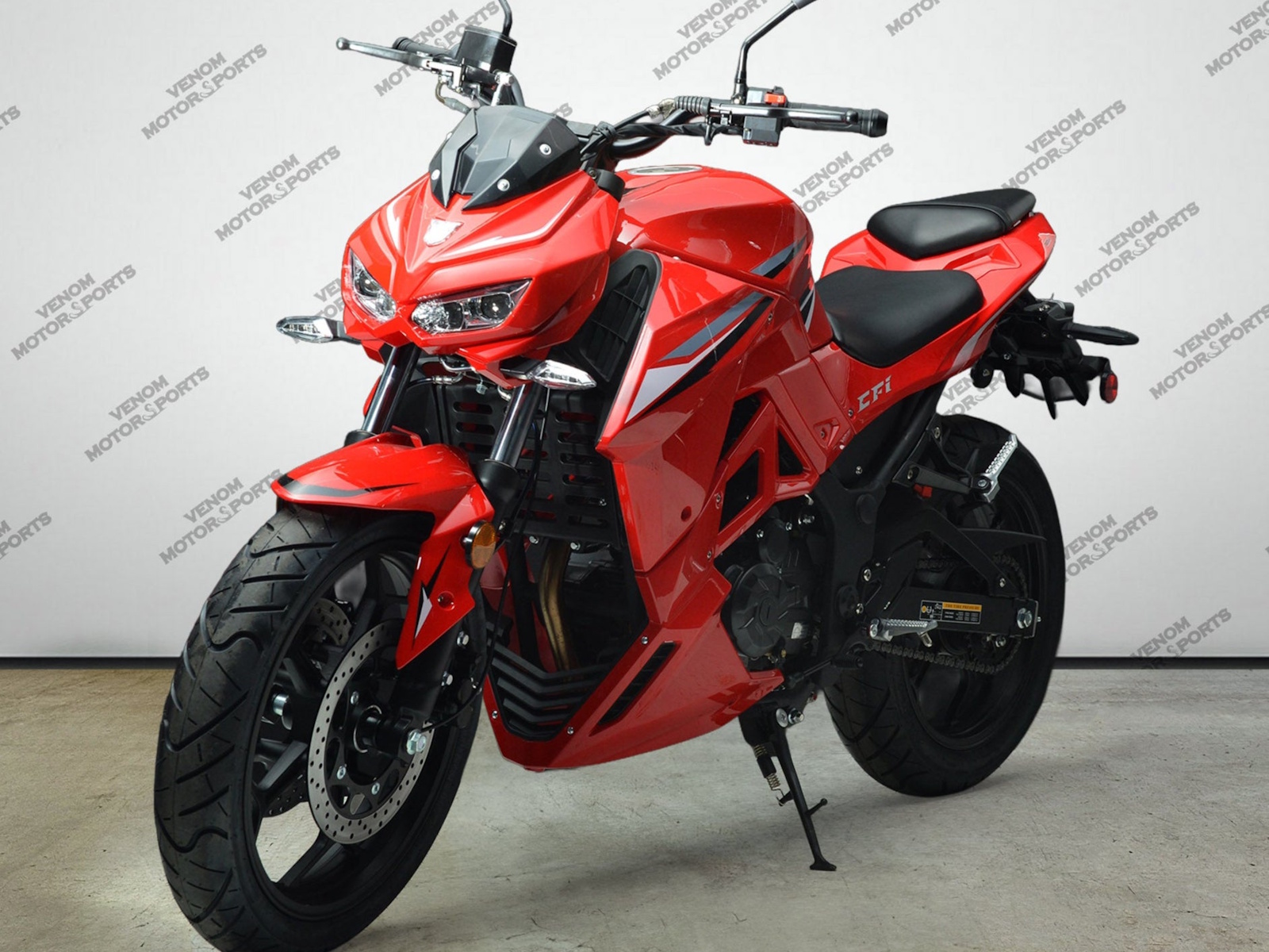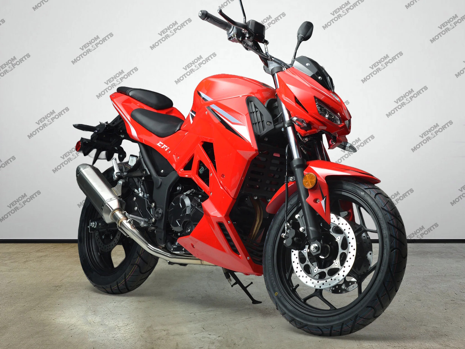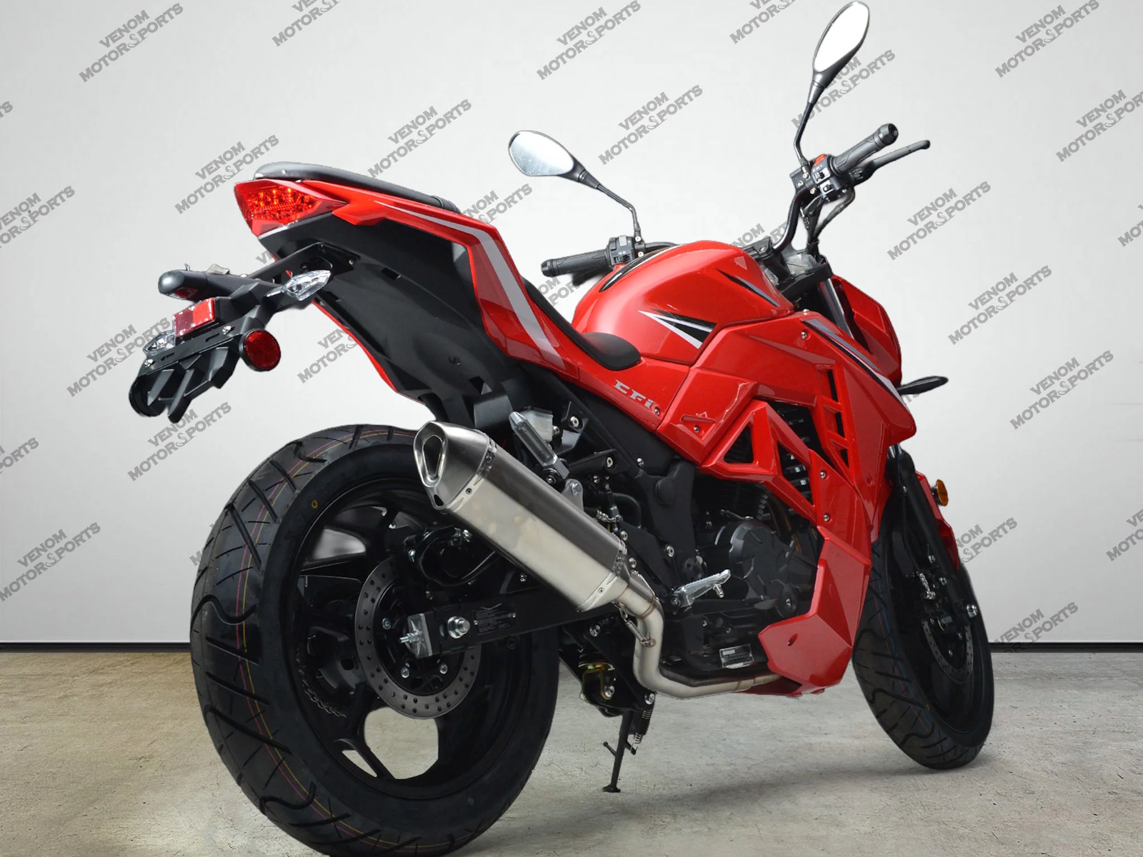 The Venom Z250 is powered by a 250cc single-cylinder, 4-stroke, air-cooled engine, delivering smooth performance and reliable power for both city streets and open roads.