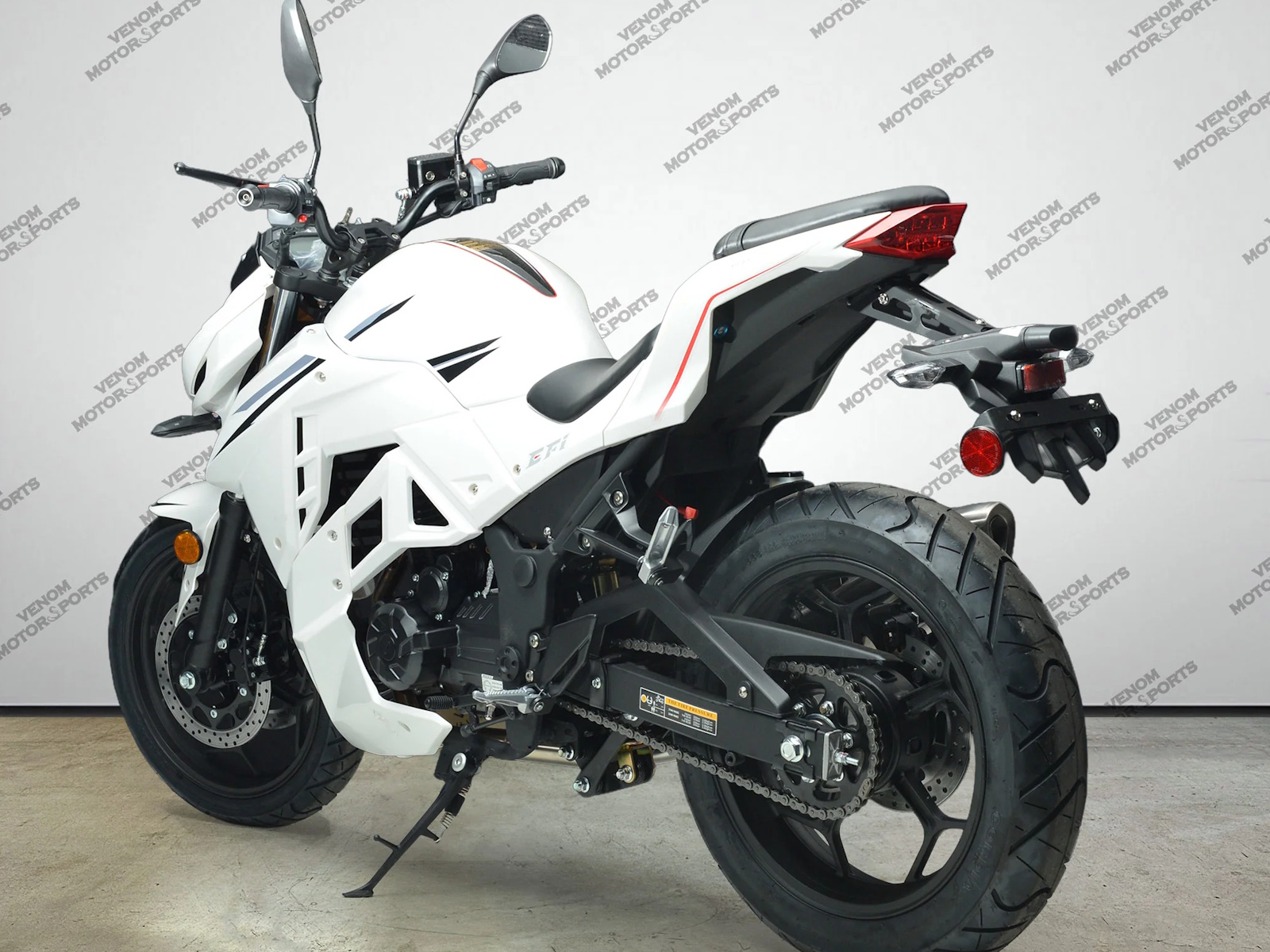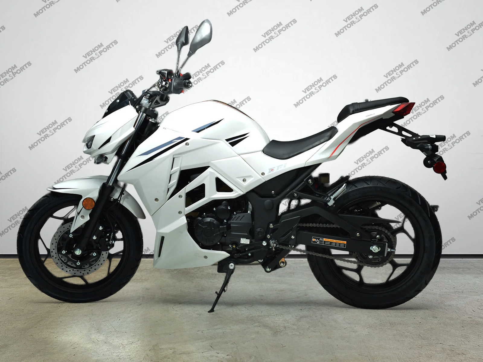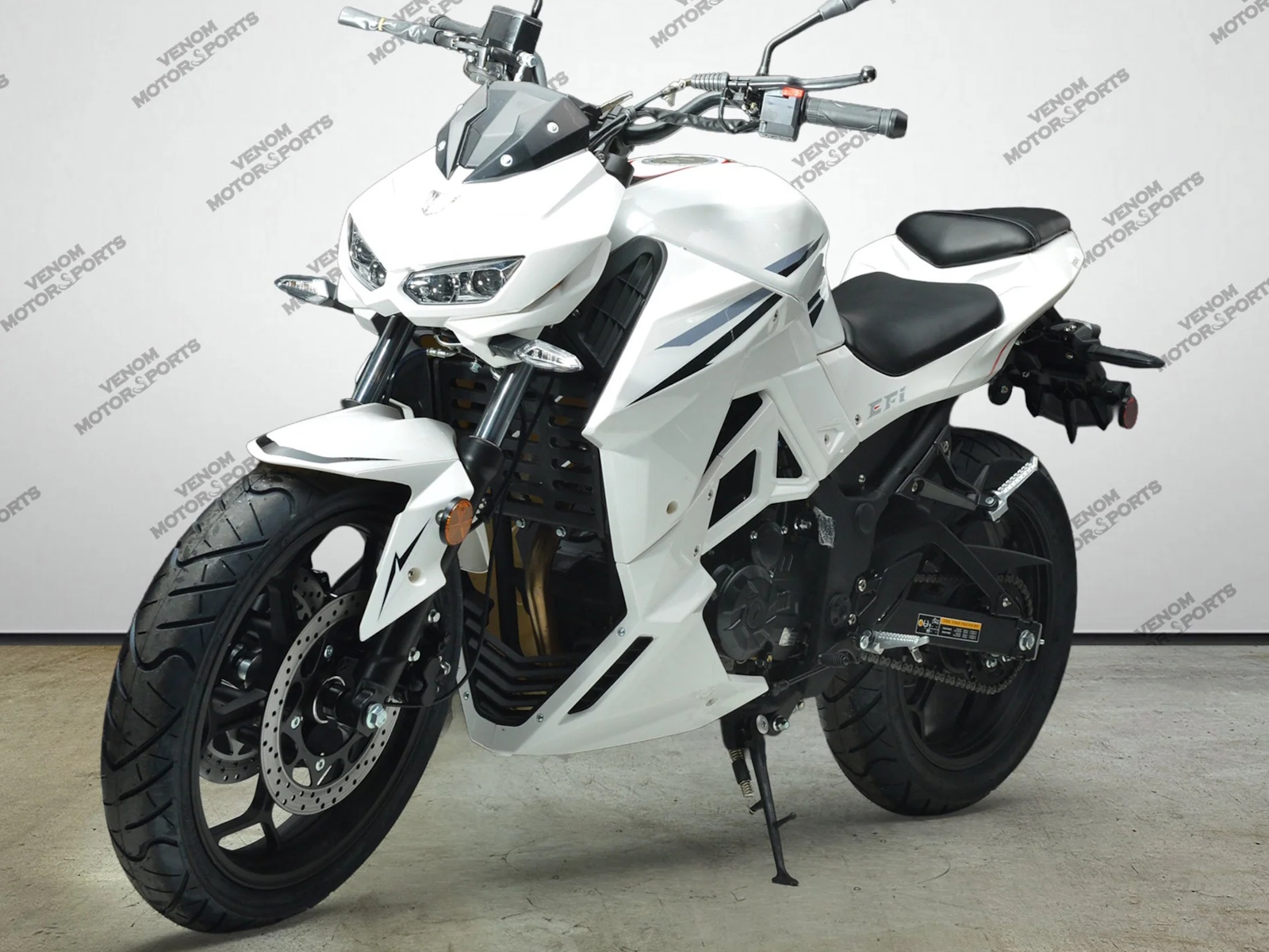 The Venom Z250 is powered by a 250cc single-cylinder, 4-stroke, air-cooled engine, delivering smooth performance and reliable power for both city streets and open roads.