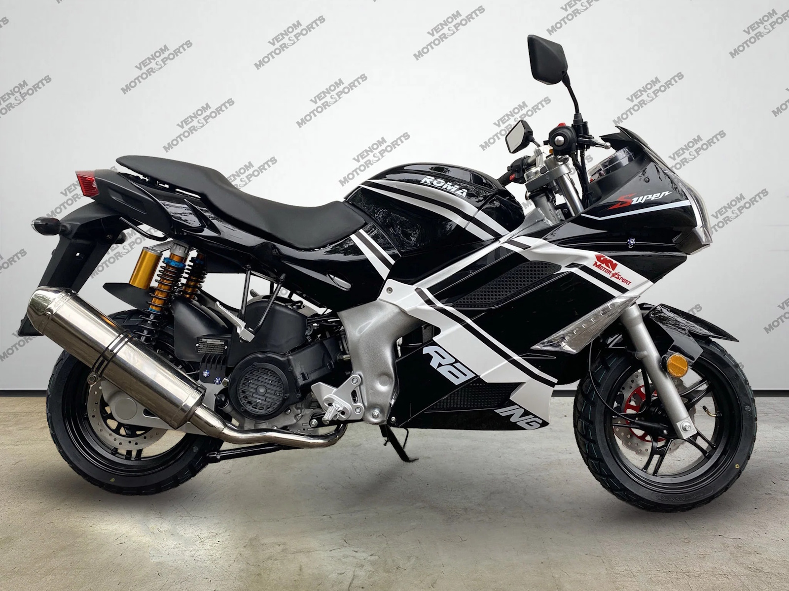 Introducing the all-new FULLY AUTOMATIC Venom X18RS 150cc motorcycle. This model is equipped with the all new GY6 150cc Automatic Engine + Transmission. The X18RS Roma 150cc motorcycle is the newest sport learning motorcycle.