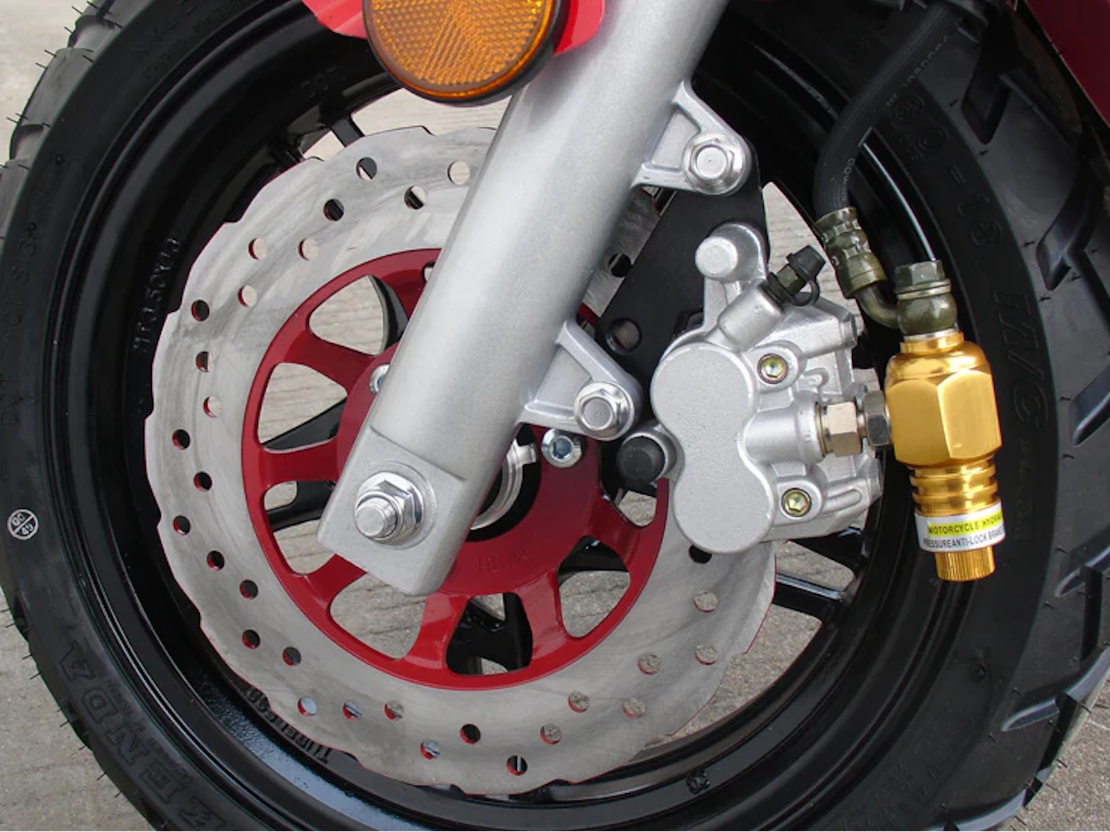 High quality braking system installed for sudden stops and better handling. Dual disc brakes in the front for quick, efficient, and reliable stops!