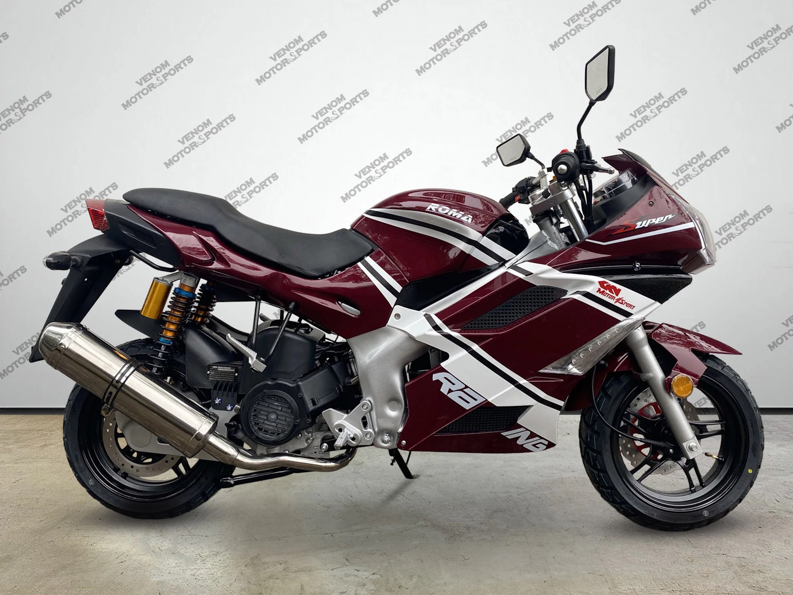 Introducing the all-new FULLY AUTOMATIC Venom X18RS 150cc motorcycle. This model is equipped with the all new GY6 150cc Automatic Engine + Transmission. The X18RS Roma 150cc motorcycle is the newest sport learning motorcycle.