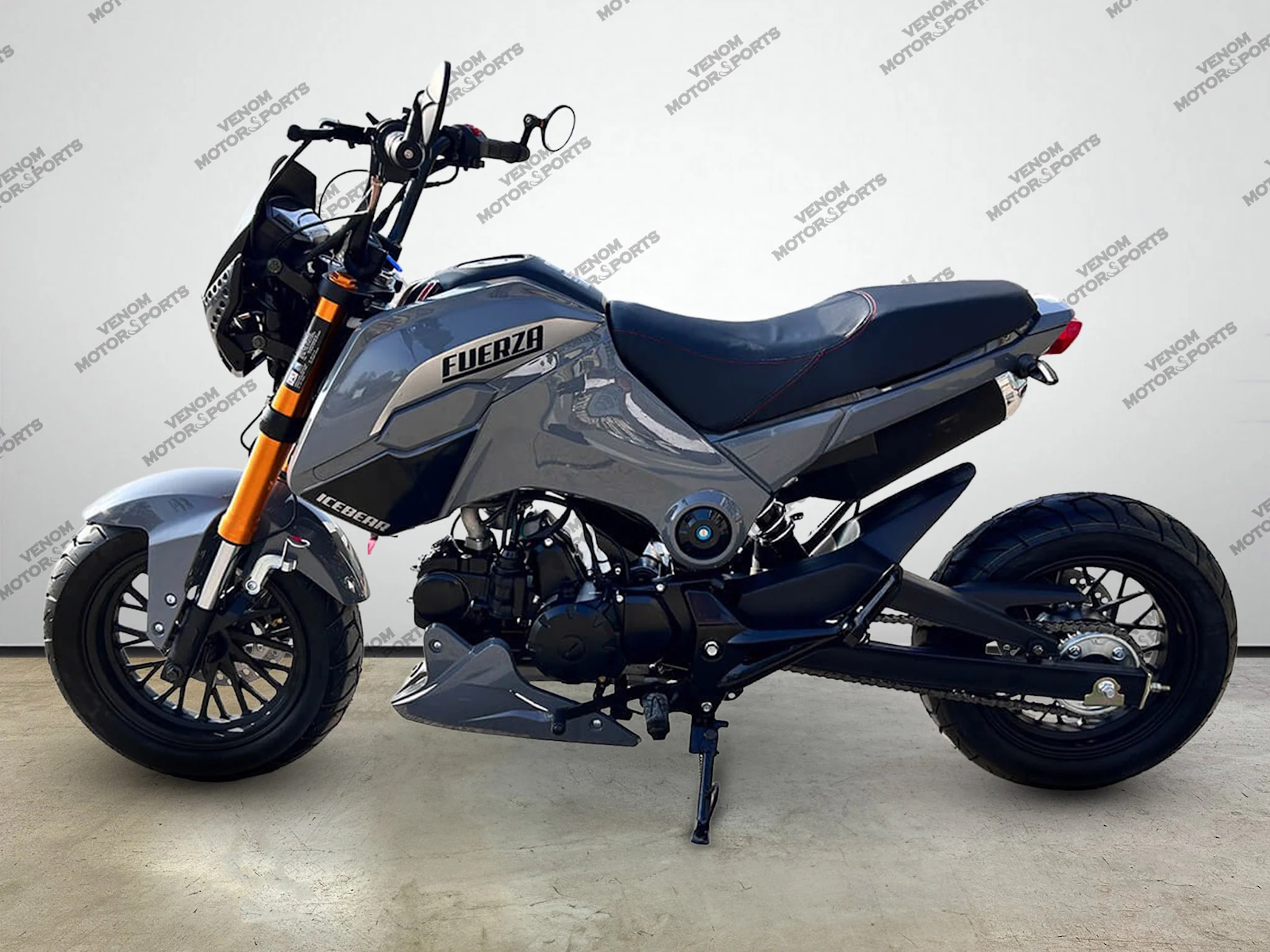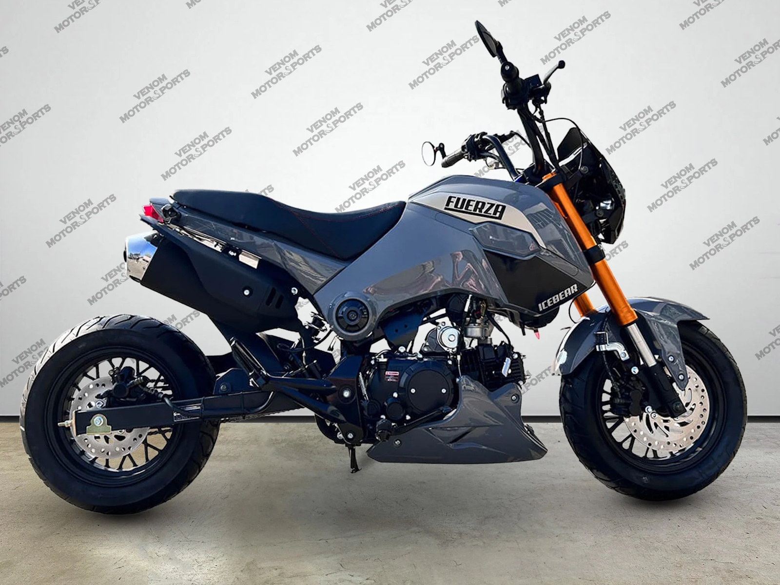 Venom welcomes your experience to the Icebear Fuerza 125cc Motorcycle! This stylish new ride offers a powerful 125cc 4-speed engine, plus an extended swing arm. You'll love the bright LED headlights, LED brake light, turn signals and 12'' inch rims for extra control. There's also a digital speedometer with speed, RPMs, mileage and fuel info. To top it off, the red leather stitching on the leather seat and gorgeous finish make this the perfect mid-size bike.