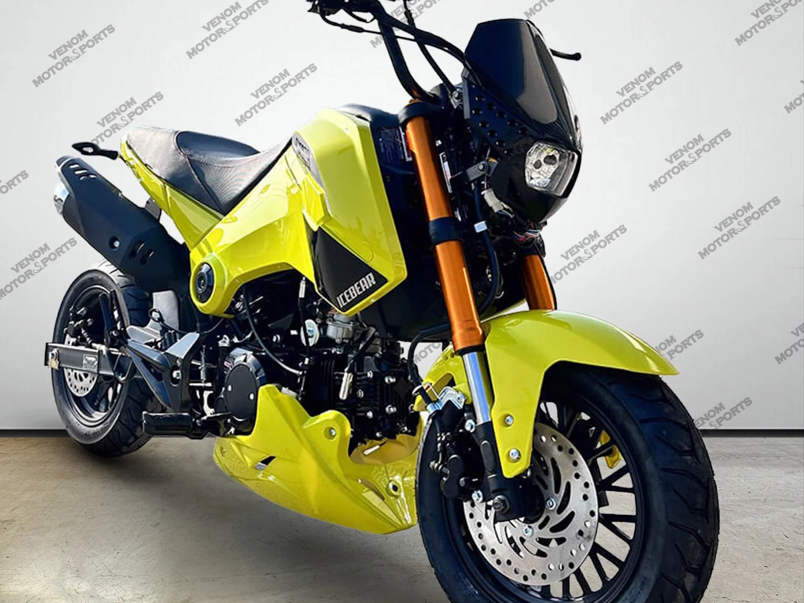 Venom welcomes your experience to the Icebear Fuerza 125cc Motorcycle! This stylish new ride offers a powerful 125cc 4-speed engine, plus an extended swing arm. You'll love the bright LED headlights, LED brake light, turn signals and 12'' inch rims for extra control. There's also a digital speedometer with speed, RPMs, mileage and fuel info. To top it off, the red leather stitching on the leather seat and gorgeous finish make this the perfect mid-size bike.